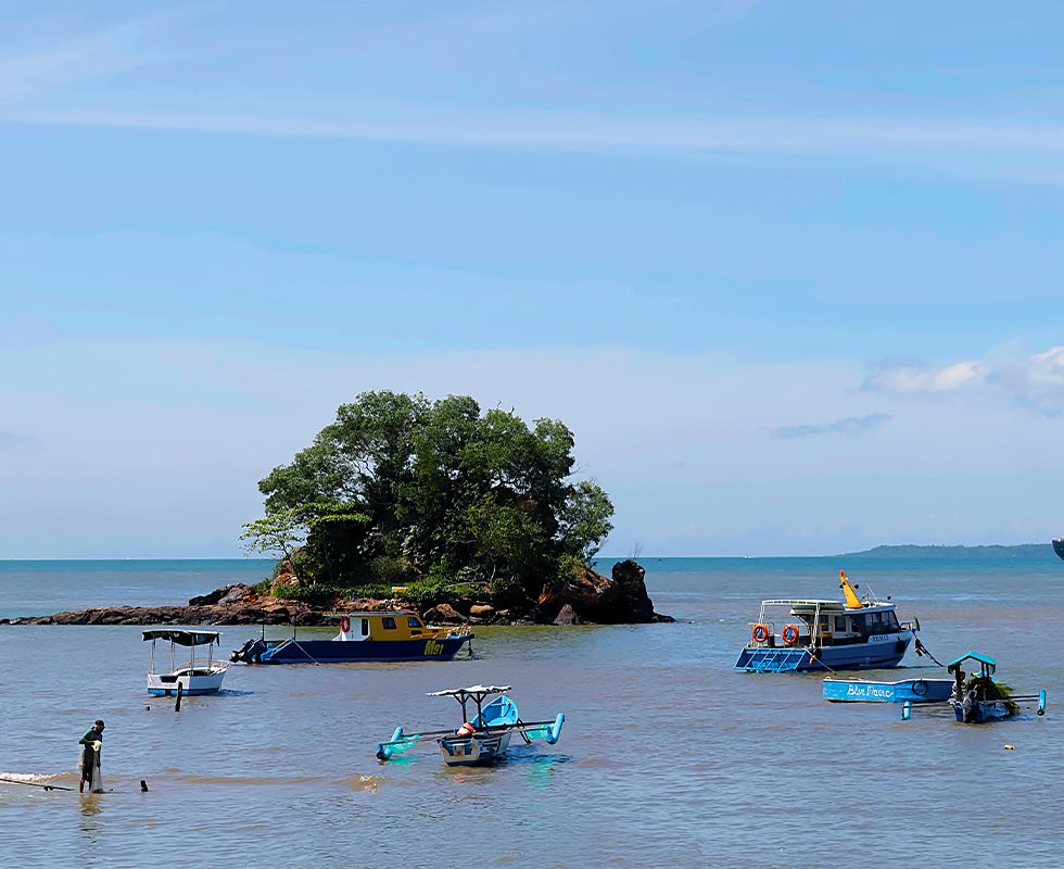 도심에서 불과 약 3킬로미터 거리에 있는 말라위 해변에는 당연하다는 듯 많은 현지인과 여행객이 찾아온다. 백사장은 없지만, 바다와 접한 도로변을 따라 산책하며 시간을 보내기에 딱 알맞다. 이곳에서 바라보이는 풍경은 발릭파판의 축소판 같다. 발릭파판만(Balikpapan Bay)의 바다 위로 작은 고깃배, 거대한 바지선과 육중한 유조선 등이 줄줄이 떠다니고, 근처에는 사무실과 관공서, 상업시설이 들어서 있다. 해변 끝으로는 세미양 항구와 석유화학 단지가 이어진다. 노천의 간이 식당과 가게도 천연덕스럽게 자리를 차지하고 있다. 그 와중에 살짝 바람이 불어 야자수가 흔들리며 느긋한 분위기를 이룬다. 참고로 저녁에는 사진을 찍으려는 사람들이 몰려들기도 한다. 보르네오섬 동쪽에서 해수면에 반사되는 석양을 감상할 수 있는 몇 안되는 곳이기 때문이다.