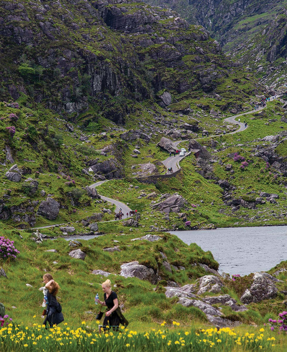 캐런투힐(Carrauntoohil)을 포함해 아일랜드에서 가장 높은 봉우리들을 옆에 둔 국립공원은 거칠고 웅장하며, 어디인지 모르게 음산하다. 차를 몰아 국립공원 안쪽 깊숙이 들어갈수록 원시적 매력은 짙어진다. 호수를 끼고 도는 좁은 도로는 숲과 늪지를 구불구불 통과한다. 참나무와 주목이 이룬 숲은 어둑할 정도로 짙고 그 안에는 아일랜드에서 유일하게 야생 사슴이 서식한다. 도로가 어느덧 국립공원의 경계를 벗어나 몰스 갑(Moll’s Gap)을 넘어서자 풍경은 더욱 드넓고 깊어진다. 바람에 바짝 엎드린 풀의 행렬은 언덕을 넘어 짙은 구름에 닿으려 한다. 링 오브 케리의 숨은 매력이 점차 드러날 태세다.