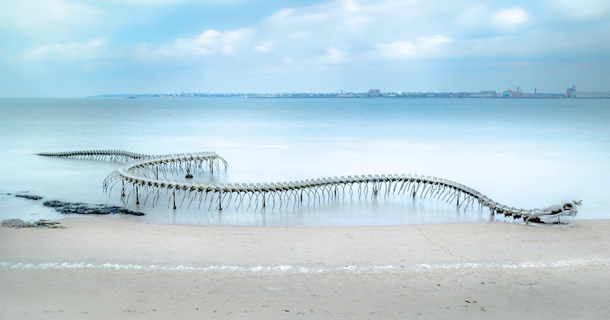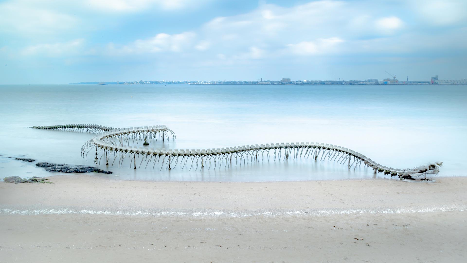 에스튀에르 순례는 바로 일 드 낭트에서 시작한다. 섬의 서쪽 강둑에서 설치 작품 <레 자노(Les Anneaux)>를 이루는 알루미늄 고리 18개 너머로 낭트의 강변 풍경을 관찰하노라면, 건너편 암반 위에 설치된 유령처럼 하얀 나무 <루나 트리(Lunar Tree)>가 눈에 들어온다. 낭트 근교 마을에선 지구온난화 때문에 <라 메종 당 라 루아르(La Maison dans la Loire)>라는 3층짜리 집이 루아르강에 살짝 잠겨 있는, 미래의 쓸쓸한 풍경이 보인다. 길이 3,356미터에 이르는 생나제르 다리(Le pont de Saint-Nazaire) 앞 해변에 이르면, 대서양 횡단을 마치고 이곳에 잠든 거대 바다뱀의 알루미늄 뼈대를 조우할 수 있다. 중국 설치 예술가의 작품 <세르펭 도세앙(Serpent D’océan)>이다.