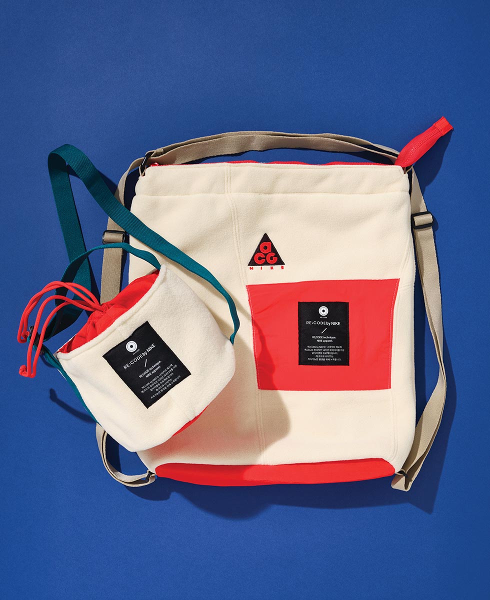 환경과 사회에 긍정적 영향을 주는 여행에 유용한 것들을 챙겨보자. 재활용 폴리에스터를 충전재로 사용한 파타고니아의 다스 파카, 여과지가 필요 없는 스탠리의 커피 드리퍼 세트 그리고 나이키와 코오롱FnC의 재고 의류 원단을 재활용한 플리스 백.