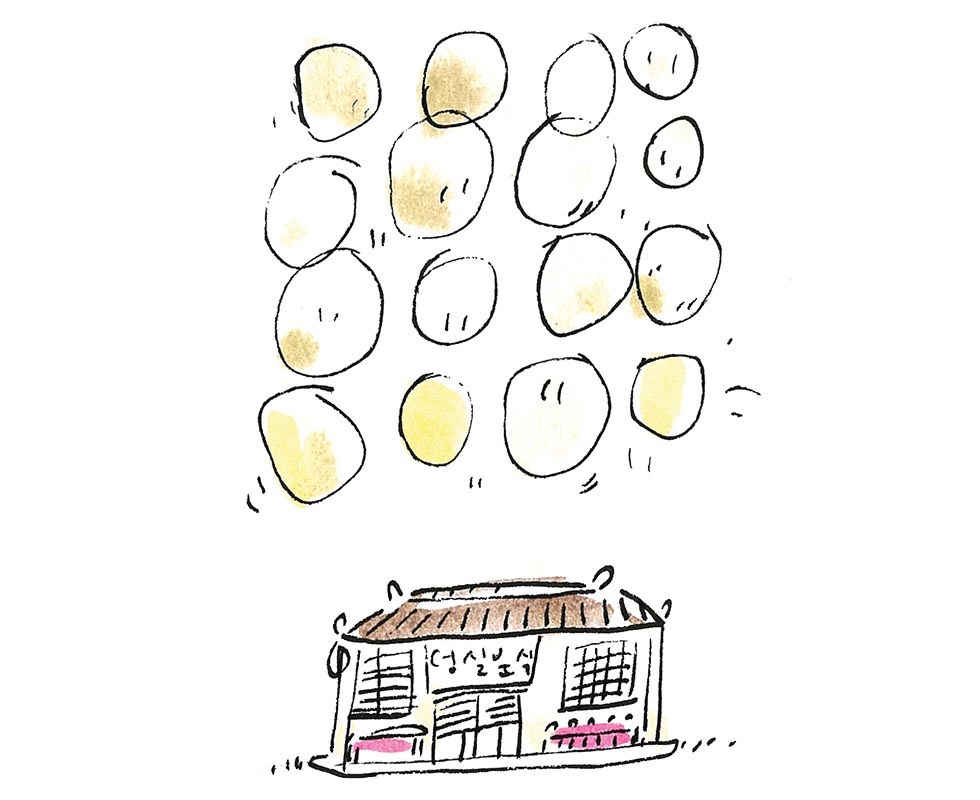오전 10시. 덩실분식에서 가스트로 투어의 스타트를 끊기 위해 부지런을 떨었지만, 매장 밖까지 이어진 대기줄에 합류하자 마자 매장 직원이 ‘오전 찹쌀떡 마감’을 알린다. 매장 뒤편 공장에서는 오후 판매를 위해 새로 찌고 있는 찹쌀 냄새가 김에 섞여 모락모락 새어 나온다. 운 좋게 받아 든 찹쌀떡 하나를 한 입 베어 문다. 부드러우면서도 쫄깃한 식감과 팥 본연의 은은한 단맛이 기분 좋게 어우러진다. 혀를 단번에 사로잡는 자극은 없지만 두고두고 생각 날 정석의 맛이다.