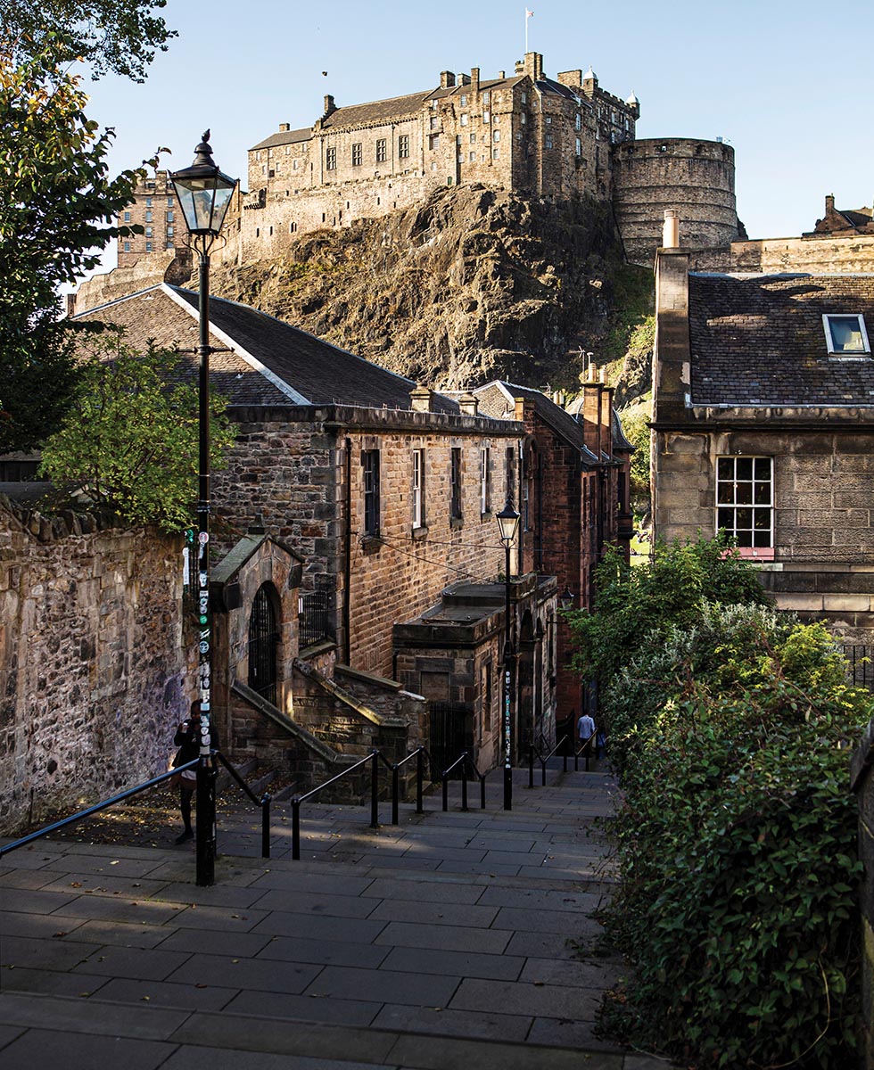 에든버러는 스코틀랜드의 수도임을 과시하려는 강박을 수시로 내비친다. 위풍당당한 화산암 위에 솟은 에든버러성(Edinburgh Castle) 앞에는 스코틀랜드 위스키의 모든 것을 입체적으로 보여주는 공간 스카치위스키 익스피리언스(The Scotch Whisky Experience)가 자리하고, 일대 거리에선 스코틀랜드 국기 문양의 페이스 페인팅을 한 마임니스트가 관광객의 시선을 사로잡는다. 인파로 붐비는 로열 마일(Royal Mile)에선 그런 강박이 절정에 다다른다. 에든버러성에서 홀리루드하우스 궁전(Palace of Holyroodhouse)까지 1.6킬로미터가량 쭉 뻗은 이 길의 이름은 16세기 스코틀랜드 국왕이 성과 궁전 사이를 오간 것에서 유래했다. 오늘날 이 길에선 킬트를 차려 입고 백파이프를 연주하는 청년들이 영화로운 과거를 재현한다. 인근의 메리 킹스 클로즈(Mary King’s Close) 앞에는 호기심 넘치는 표정의 방문객들이 투어 가이드의 안내에 귀 기울이고 있다.