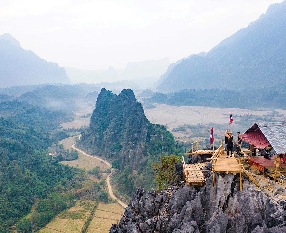 카르스트 지형의 가파른 산과 도시를 휘감아 흐르는 남송강(Nam Xong River)이 어우러진 놀라운 모습은 방비엥을 잊지 못할 여행지로 만든다.