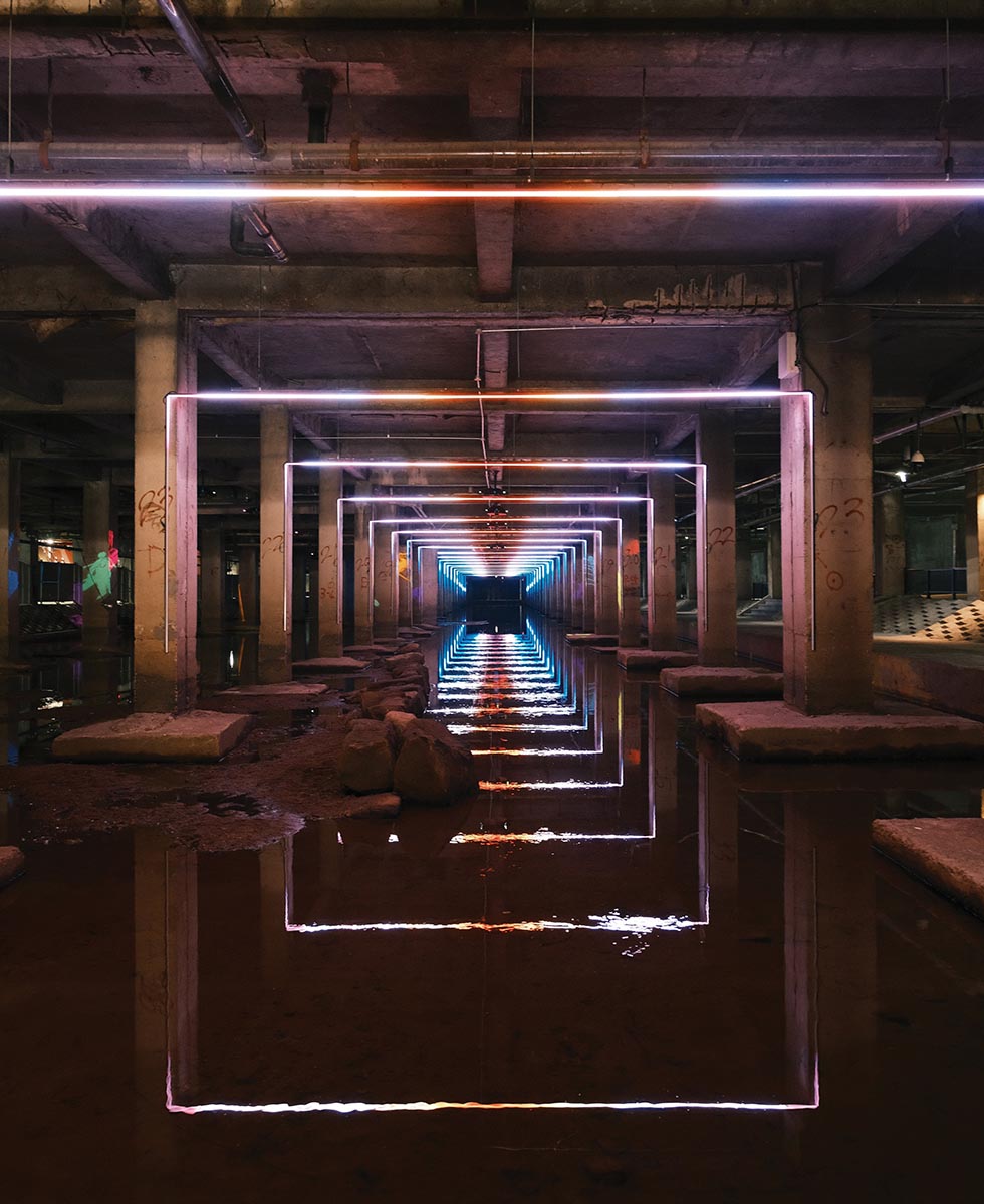 1970년대에 완공된 유진상가 건물 지하 공간에 흐르는 홍제천을 따라 개방형 미술관이 문을 열었다. 8개의 설치 작품과 산책로를 갖춘 홍제유연이다. 특히 이곳은 사람들의 움직임에 반응하는 감각적인 멀티미디어 작품 덕분에 출사지로 인기를 끌고 있다.