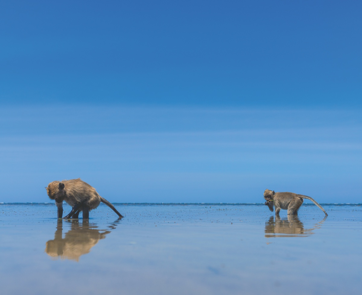 발루란 국립공원의 해변은 사바나와는 전혀 다른 생태를 숨기고 있다. 공원 내 바마 해변(Pantai Bama)으로 이동해 자바원숭이를 찾는다. 이곳에 서식하는 자바원숭이는 평탄한 파도가 밀려드는 해변의 백사장을 휘저으며 작은 게를 조곤조곤히 캐 먹는다. 그 옆으로는 진초록 맹그로브 숲이 수수히 펼쳐지고, 투명한 발리해의 해수면이 파란 하늘과의 경계를 지운다. 해산물을 먹는 원숭이의 우스꽝스러운 장면이 강렬한 자연색에 희석되어 현실로 다가온다.