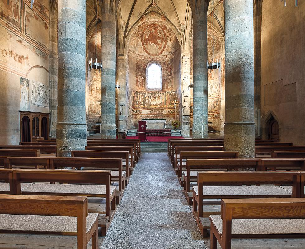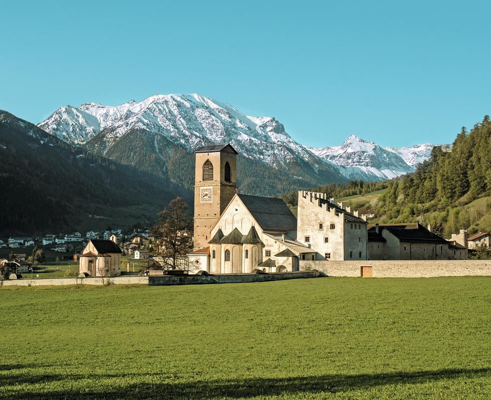 775년 설립된 뮈스테어 성 요한 수녀원의 웅장한 예수 일대기 프레스코화는 교회 곳곳을 장식한다. 카롤링거 양식의 교회 건축과 1,200여 개의 앱스(apse)에 그려넣은 독창적인 프레스코화는 이 알프스의 수도원을 세계유산에 등재되게 했다.