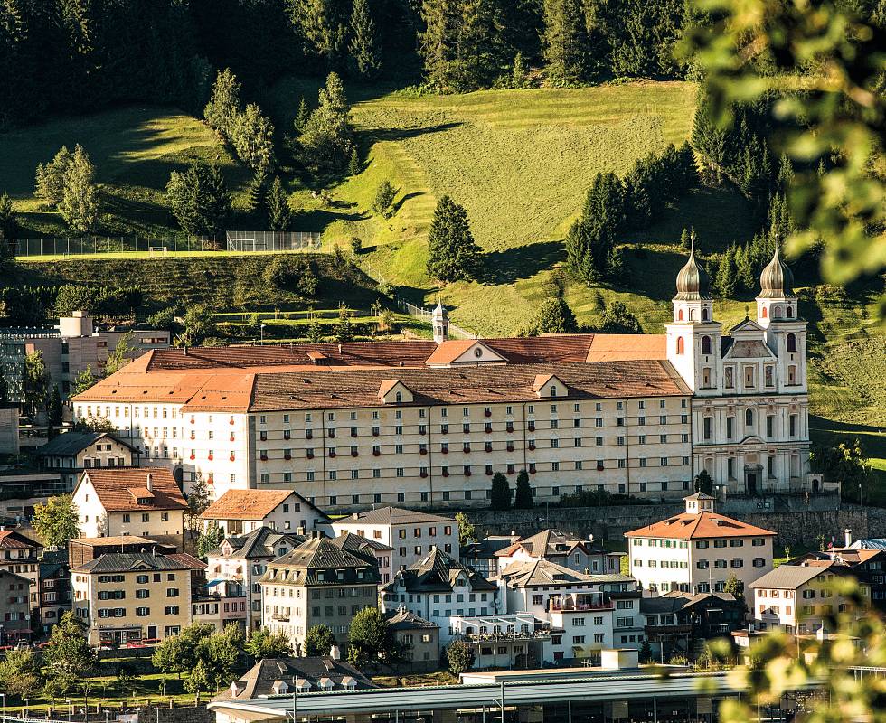 수도원 단지 내에 수도사를 위한 생활 공간을 포함해 교구 학교, 10곳의 작업장, 수도원에서 직접 생산한 와인 창고와 수도원 소유의 말을 사육하는 마구간이 있다. 베네딕트회 수도사들은 콘서트, 가이드 투어, 공개 미사 등을 열어서 모든 방문객이 그들의 삶을 들여다보고, 스위스에서 가장 인상적인 수도원 단지가 어떤 모습인지 확인할 수 있게 해준다.