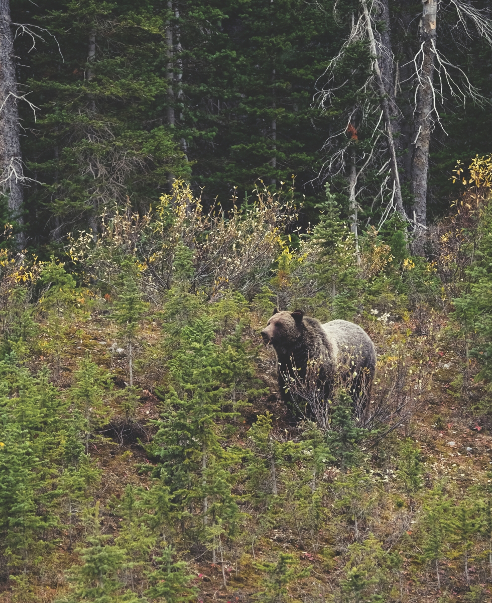 아이맥스 영화 같은 풍경을 가슴에 품고, 도로를 따라 천천히 이동하던 우리는 또다시 길가에 멈춘 차량들을 발견한다. 곧바로 짙은 갈색의 동물 하나가 도로변에 어슬렁 나타난다. 7 그리즐리 베어다. 둥그런 몸집의 곰은 작고 단단한 눈망울로 차에 탄 관객들을 쳐다본다. 예상치 못한 신비로운 조우다. 재빨리 카메라를 꺼낸다. 뷰파인더 안에서 그리즐리 베어는 이리저리 두리번거리다가 장난스레 흙을 파헤친다. 그 모습은 마치 이 땅에는 다른 생명도 존재한다는 확실한 표현 같다. 거대한 로키산맥 안에서 인간은 자연의 일부에 불과하다. 며칠 동안 산의 장막에 둘러싸여 길 위를 달렸건만, 이제 자연 가까이 겨우 몇 미터 더 다가섰다.