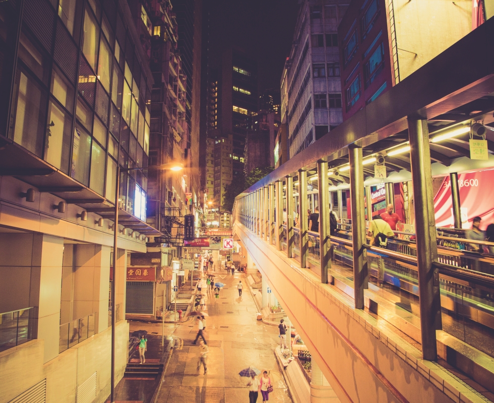 스타의 거리 (Star Street), 침사추이 시계탑 (Former Kowloon – Canton Railway Clock Tower), 스타 페리(Star Ferry), 센트럴 금융가, 미드 레벨 에스컬레이터(Mid – Levels Escalator), 소호 거리 (Soho Street), 빅토리아 피크 (Victoria Park) 등.