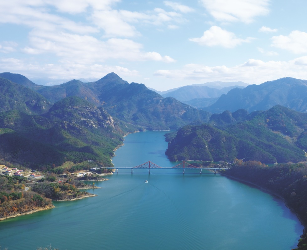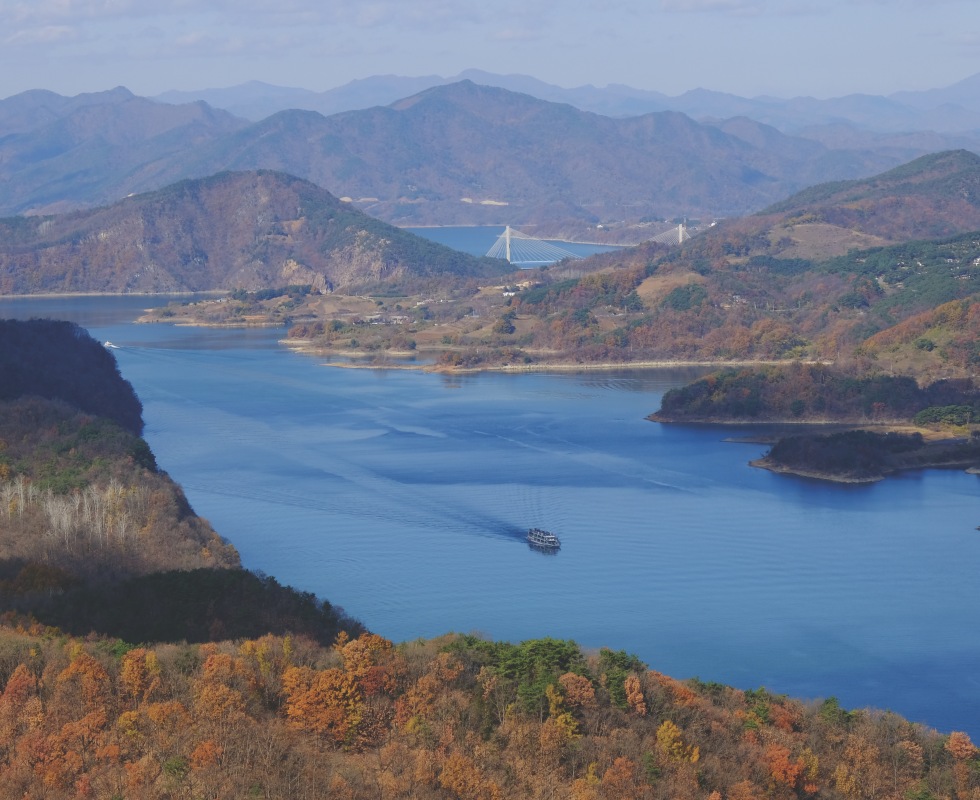 “저쪽으로 가면 제가 낚시하는 데가 나옵니다. 얼마 전에는 아들하고 같이 낚시를 했드랬지요.” 제천 관광택시 기사님이 강원도와 충청도 억양이 섞인 독특한 어조로 말을 잇는다. “사실 충주호의 60퍼센트가 제천에 있지 않겠습니까. 그래서 저희는 청풍호라고 부릅니다.” 기사님은 단정한 투 버튼 재킷 유니폼을 입고 시종일관 여유롭게 운전을 이어간다. 청풍호의 시원한 줄기가 차창 밖으로 흐른다. 백두대간의 지류는 울룩불룩 솟아올라 호수를 양옆으로 감싸고, 커브를 돌 때마다 수세와 산세가 명미하게 펼쳐진다. 저 멀리 월악산이 보일 듯 말 듯, 택시는 청풍대교를 건너 굽이 길을 달리다 수산면에 들어선다.
