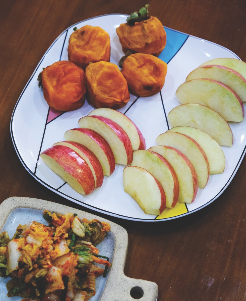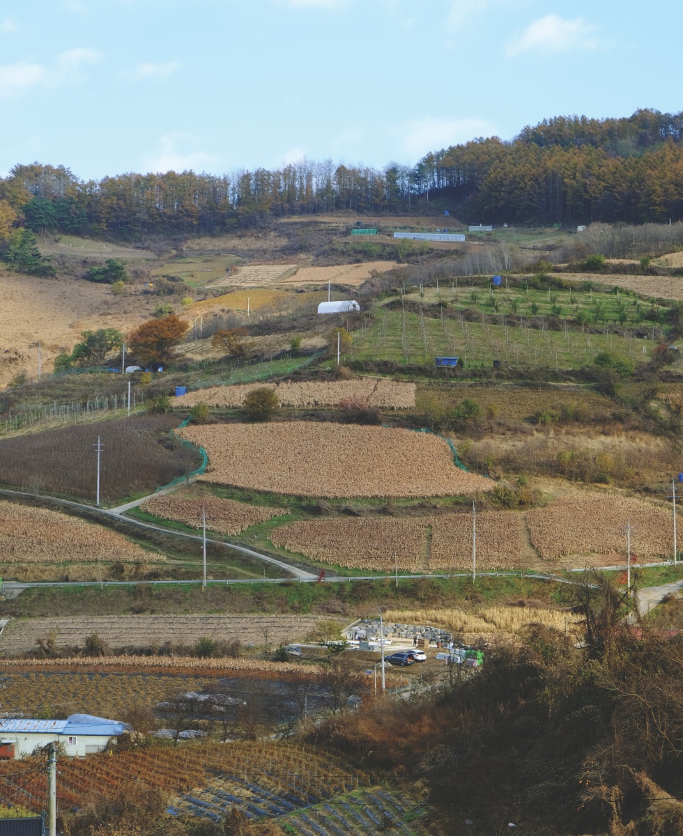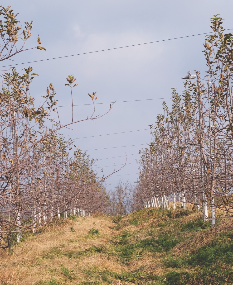 아침 식사를 마치고, 수곡리 앞산 비탈에 자리한 김영수, 박영란 부부의 사과밭 으로 이동한다. 두 부부는 자연의 섭리를 거스르지 않도록 사과를 재배한다. 게절마다 스스로 알아서 변화하고 생장하는 게 자연의 이치겠지만, 사실 이를 따르는 농사는 쉽지 않다. 그 때문에 10년 동안 제대로 수확을 못했다고. 연간 5~6회만 농약을 살포해 수확한 과실의 개수는 밭의 규모에 비해 몇 안되지만, 맛은 놀랍도록 달콤하고 시원하다.
