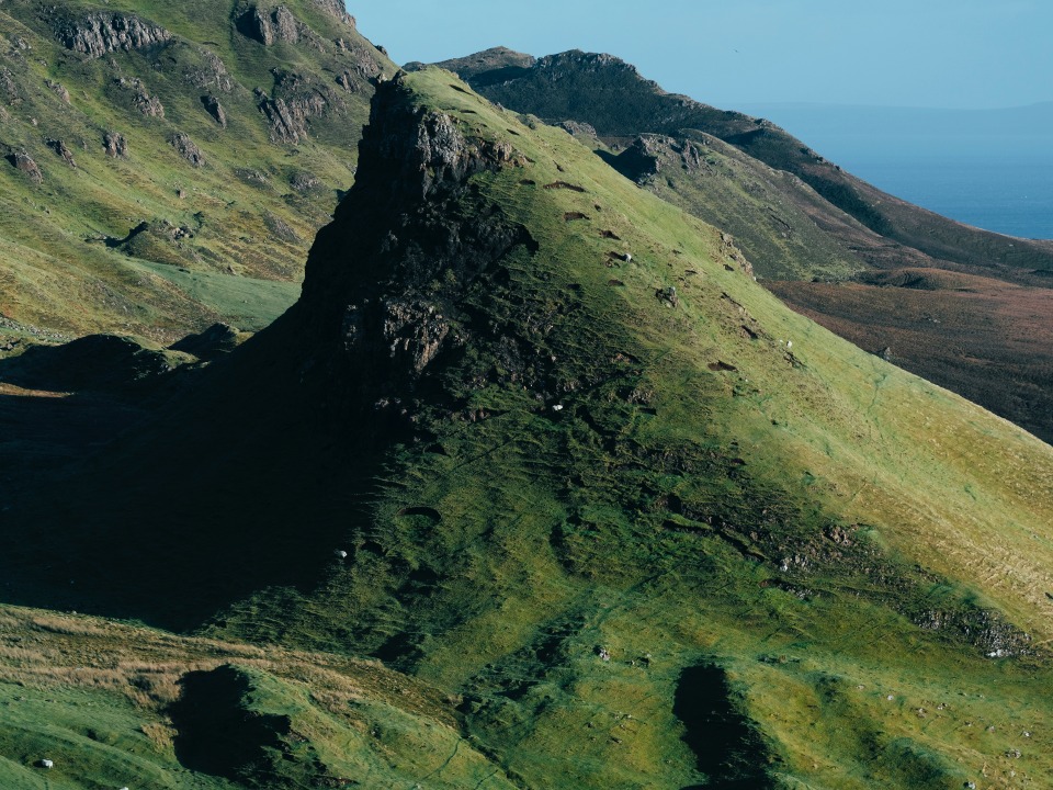 박 스카이섬은 스코틀랜드의 대표 여행지예요. 스코틀랜드 중에서도 풍경이 매우 독특하죠. 제가 갔을 때는 날이 아주 흐리고 기이할 정도로 바람이 강했어요. 공중에 빗방울이 계속 날아다녔고요. 카메라도 전부 젖었습니다. 스코틀랜드 브랜드의 재킷이나 코트는 왜 왁스 코팅이 되어 있는지, 이 지역에 직접 가보면 바로 알게 됩니다. 사진 속 장소는 올드맨오브스토르 (The Oldman of Storr)예요. 낮은 언덕 같은 산을 올라가면 기괴한 돌이 많아요. 저 돌들이 분명 위스키의 맛에 영향을 끼쳤을 거예요. 사진 속 장소는 리들리 스콧 감독의 영화 〈프로 메테우스〉 초반부에서 인류학자들이 외계 생명체가 남긴 동굴 벽화를 발견하는 장면을 촬영한 곳입니다.