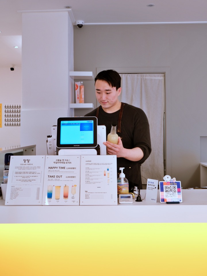 우리술당당이 가진 콘텐츠는 소매점, 펍, 클래스 이렇게 세 가지로 나눌 수 있는데요. 소매점은 200여 종의 우리 술을 구경하고 구매하는 공간이고, 펍에서는 구매한 술이나 저희만의 특별 레시피로 만든 칵테일을 간단한 안주와 곁들여 즐길 수 있어요. 마지막으로 클래스는 외국인과 내국인을 대상으로 우리 술을 직접 빚어보는 체험을 할 수 있는 자리입니다.