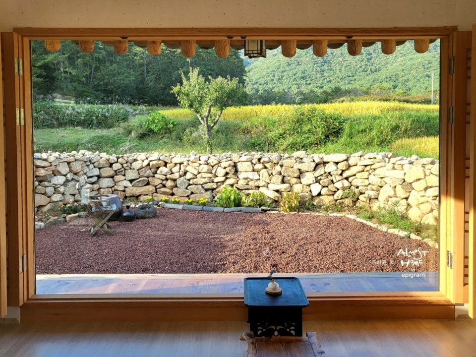 다음 날 아침, 전복과 미역국, 각종 나물과 젓갈로 차린 조식을 먹고 안쪽에 자리한 다실에 모여 앉았다. 반달 모양 사과와 방금 우린 녹차, 창밖으로 펼쳐진 월출산 봉우리들. 하룻밤 숙소로만 생각한 한옥에서 이렇게 근사한 아침 시간을 보내다니, 이조차 준비된 일정의 하나라면 더없이 사려깊고 감사하다는 생각이 들었다.