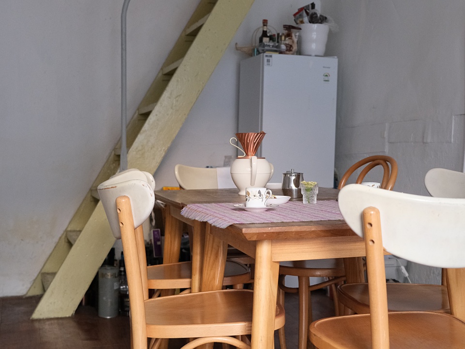 위스키 실험실 보연정은 공업사 사이에 자리해 있다. 보연정의 정보연 대표는 보연정의 자리를 정하기 전, 공업사가 모여 있는 곳을 일부러 찾아 다녔다고 말했다. “이른 아침부터 담배를 입에 물고 작업에 몰두하는 공업사 사장님들의 모습이 멋있어 보였어요.” 1층과 다락방으로 나뉜 공간 구조에 마음이 동해 청파동 지금의 자리에 둥지를 틀었다. “1층은 2070년의 런던, 다락방은 2070년의 도쿄를 상상하며 공간을 꾸몄어요.” 본인이 할머니가 될 때까지 지니고 싶은 기물과 가구로 보연정을 채웠다. 냉장고와 싱크대를 제외한 모든 물건은 세컨드핸드 제품. 다락방에 있는 전축과 스피커는 정보연 대표의 아버지에게 물려받았다.