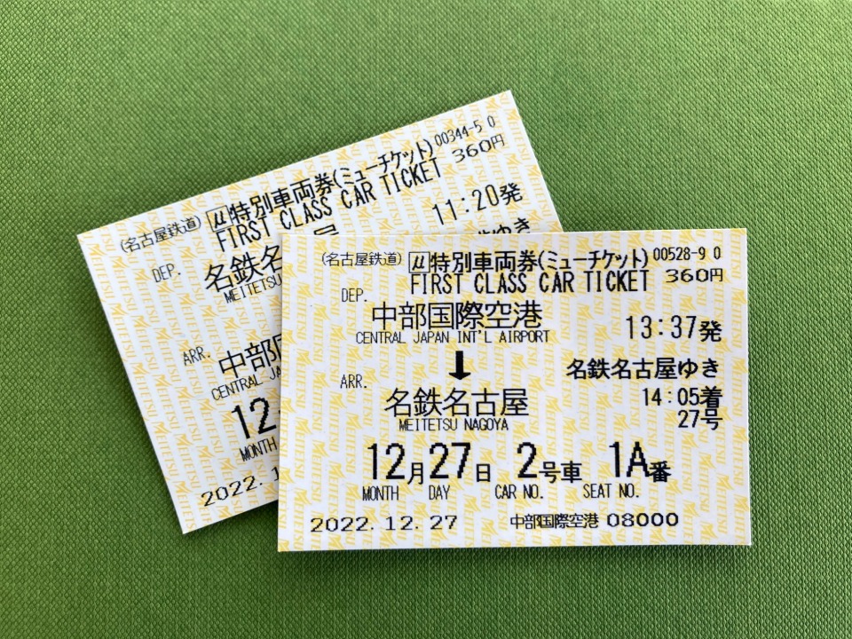 여기까지 하고 요금을 넣으면 일반 티켓과 특별차 티켓 2장이 나오는데, 개찰구에선 일반 티켓만 사용하고 특별차 티켓을 소지한 채 지정석에 앉으면 된다. 막상 알고 나니 허무했지만, 저 안내 문구를 보고 정말 다들 한번에 성공하는지 너무 궁금했다(여전히 궁금하다). 물론 “메이테츠 나고야, 뮤스카이, 후타츠!” 이 세 단어만 알아도 매표소에서 이 모든 과정을 건너뛸 수 있긴 하다... 자동판매기에서 뮤티켓 구입하기, 모두들 어렵지 않았습니까?!