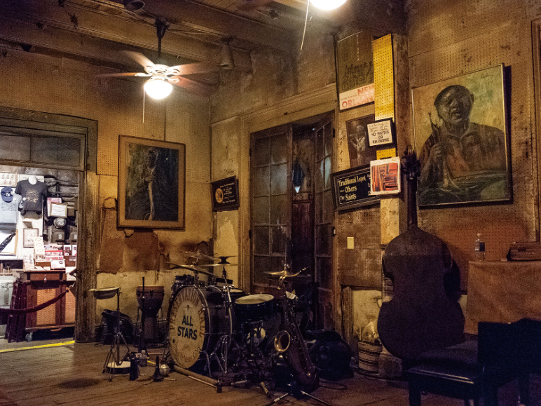 그중 프리저베이션 홀(Preservation Hall)만큼은 반드시, 일부러 찾아가길 추천한다. 뉴올리언스 정통 재즈를 지키기 위해 1961년 조직된 비영리 단체의 라이브 공연장이다. 1803년에 지은 오래된 건물 안 옛 갤러리에 들어서 있는데, 이름만 ‘홀’이지 작은 방에 가깝다. 여럿이 다닥다닥 붙어 앉는 긴 의자 몇 개가 전부라, 입석 티켓이라도 구했다면 운이 좋은 축에 속한다. 거의 매일 밤 서너 차례의 공연이 있는데 입장권 예매가 쉽지 않으니, 얼마나 대단한 공연인지 더 말하지 않아도 되겠지. 마이크, 스피커 등의 음향 시설은 물론 냉난방 시설도 없는, 완벽한 아날로그 라이브 공연. 뮤지션들의 호흡과 연주가 생생하게 전달되는 마법 같은 경험이다. 참고로 공연 중 영상, 녹음, 사진 촬영은 모두 불가. 핸드폰을 꺼내는 순간, 어디선가 손전등 불빛이 날아와 경고를 보낼 것이다.
