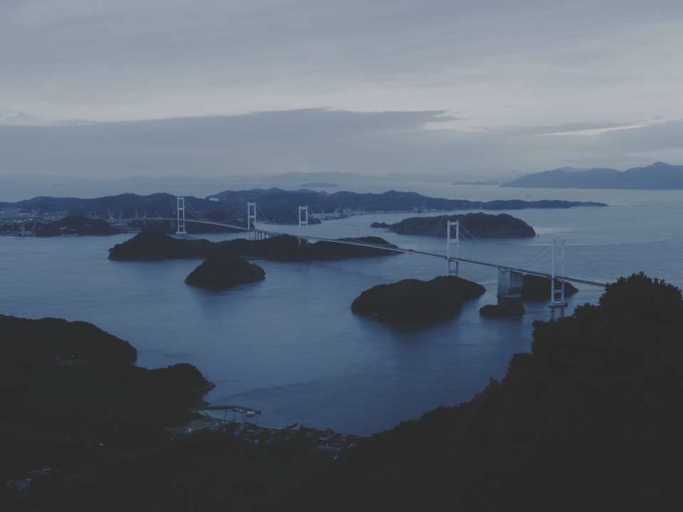 오시마섬의 기로산전망공원(亀老山展望公園)은 시마나미카이도 드라이브의 매력을 파노라마로 확인할 수 있는 장소다. 차를 몰고 구루시마해협대교를 건넌 후 기로산의 꼬불꼬불한 길을 10분 정도 올라가면 도착할 수 있다. 거북이의 형상을 한 봉우리에 들어앉은 전망대는 세계적 건축가 구마 겐고(隈研吾)의 작품. 주변 자연과 어우러지기 위해 디자인한 이 건축물은 거북이처럼 고개를 낮추고 있다. 최대한 높이 솟아오르려는 일반적인 전망대와는 전혀 다른 접근 방법이다. 건물의 본체를 산봉우리의 지면 아래에 배치했고, 윗부분에는 조경을 두른 덕분에 전체적으로 산속에 숨은 듯하다. 이렇게 자연에 스며든 전망대에서 바라보는 조망은 압권이다. 세토내해와 시코쿠 그리고 주변 섬들로 이뤄진 풍경이 발 아래로 부드럽고 드넓게 펼쳐진다. 해 질 무렵이면, 시마나미카이도의 가로등과 해안가 건물이 점점이 불빛을 밝히고 세토내해의 수평선이 짙게 물든다.
