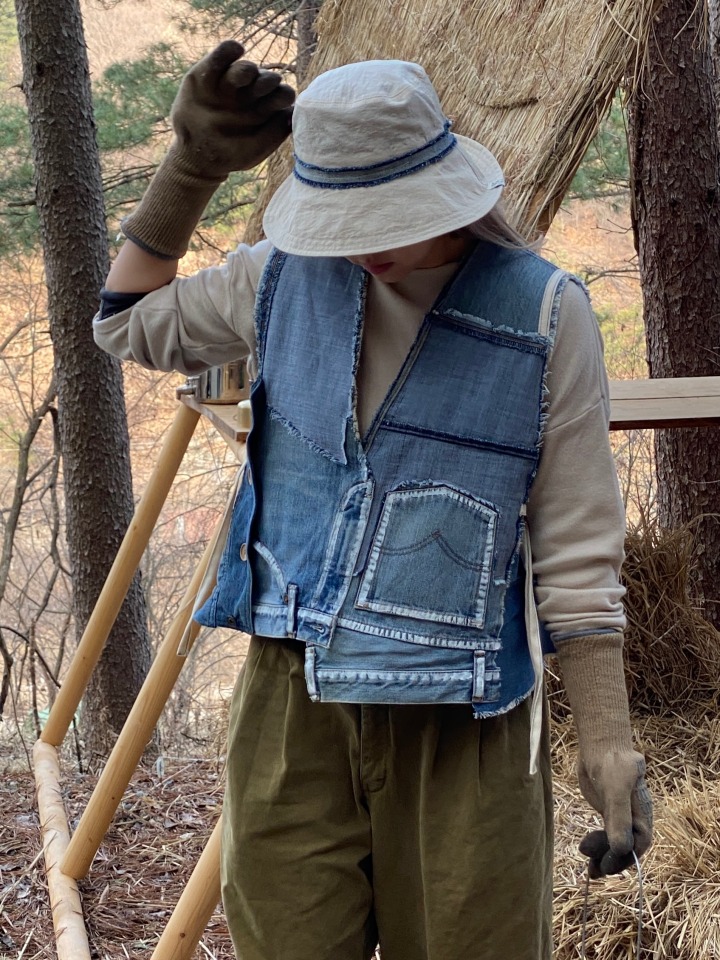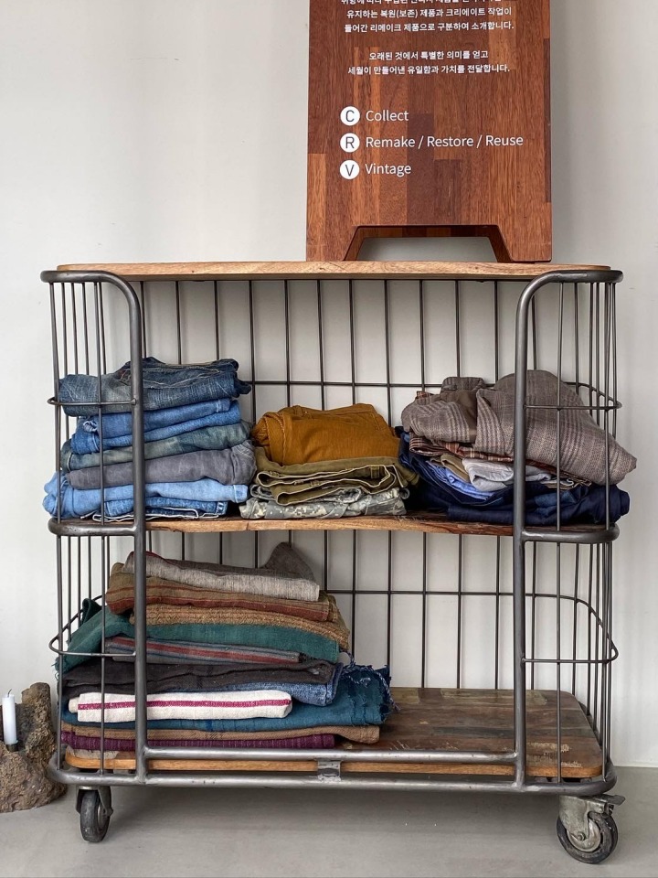 반면, 우리나라에서는 매년 의류가 얼마나 생산되고 폐기되는지 통계조차 정확하지 않은 실정이다. 환경부에 따르면, 2020년 한 해 동안 발생한 의류 폐기물은 약 8만2423톤(가장 최신의 통계다). 친환경 소재도 좋지만 재고나 폐기물 등 이미 생산된 제품을 적극 활용하는 브랜드를 찾다 플라스틱팜을 발견했다. 일상과 자연을 넘나드는 라이프스타일∙패션 브랜드 플라스틱팜은 업사이클 소재로 빈티지 제품을 리메이크하는 ‘CRV(Collect/Reuse, Remake, Restore/Vintage)’ 프로젝트를 막 시작한 참이었다.