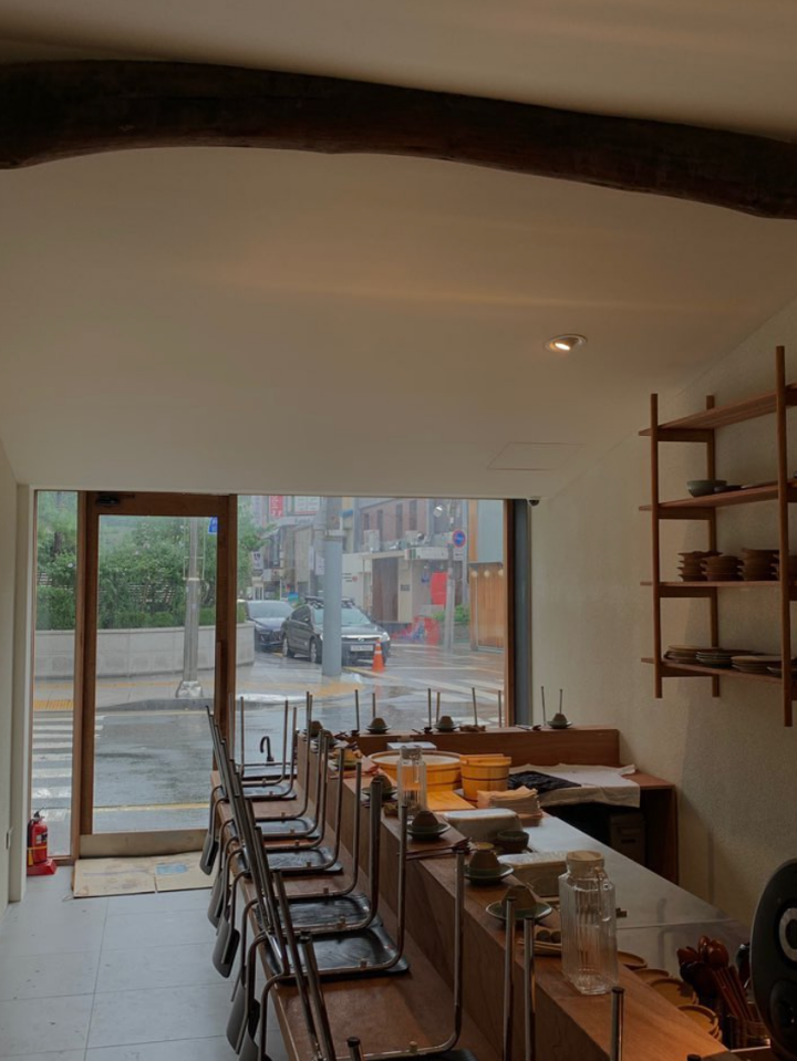 오랜 기간 목공방이었던 공간을 식당으로 바꾸기 위해서는 많은 변화가 필요했어요. 식당에 최적화되도록 꾸며야 했으니까요. 조금 무리를 해서라도 꼭 지키고 싶었던 건 대들보예요. 이 공간의 정체성을 잃지 않기 위해서 대들보만은 건들고 싶지 않더라고요.