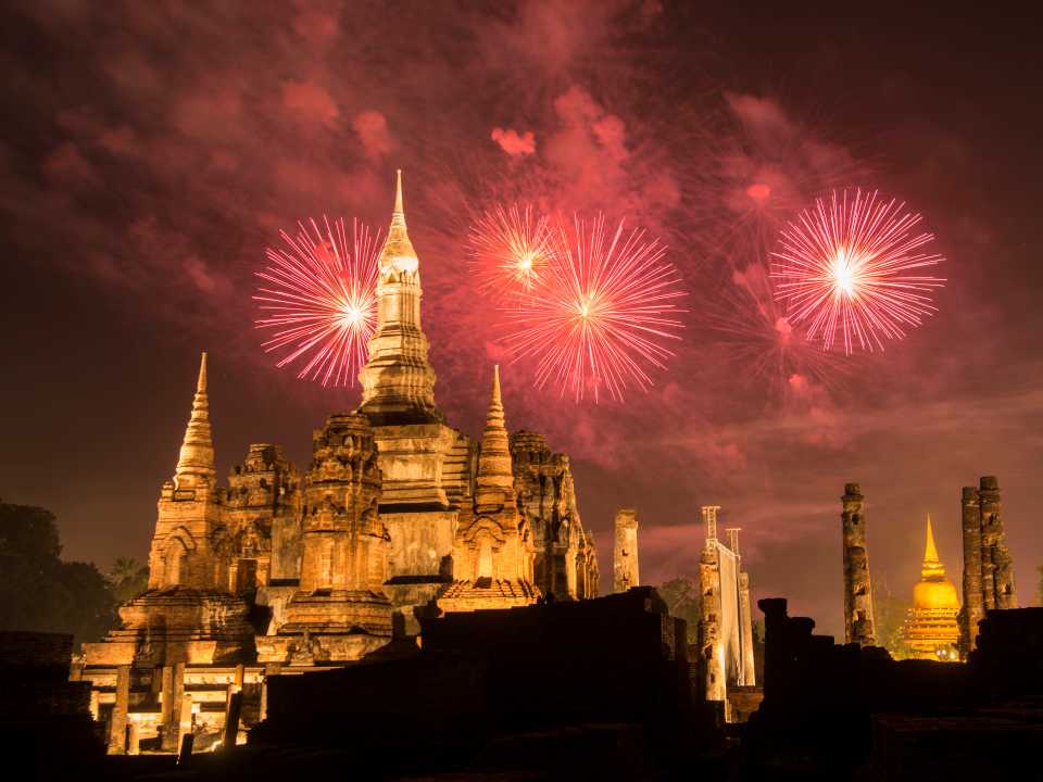 수도 방콕에서 북쪽으로 약 400킬로미터 거리에 있는 유서 깊은 도시 수코타이(Sukhothai)에서는 가장 전통적 형태의 러이 끄라통 축제를 즐길 수 있다. 1991년 유네스코 문화유산에 등재된 수코타이 역사 공원(Sukhothai Historical Park)을 배경으로, 전등 행렬, 끄라통 띄우기, 각종 전시회, 민속춤 등의 다채로운 행사가 펼쳐진다. 수코타이는 13세기 중반 타이족이 세운 태국 최초 독립 왕국의 수도로, ‘행복의 새벽’을 의미하는 도시 이름처럼 태국의 첫 번째 전성기가 시작된 곳이라고 알려져 있다. 당시 태국은 인도차이나반도의 맹주였던 크메르의 영향권에서 벗어나 불교를 받아들여 종교 예술과 건축을 발전시키고 문자를 만들어 기록하며 독자적이고 차별화된 문화를 꽃피웠다. 직사각형 성벽 안에 고대 사원을 여럿 품고 있는 수코타이 역사 공원에는 약 200년간 찬란히 번성했던 왕국의 흔적이 고스란히 남아 있다.