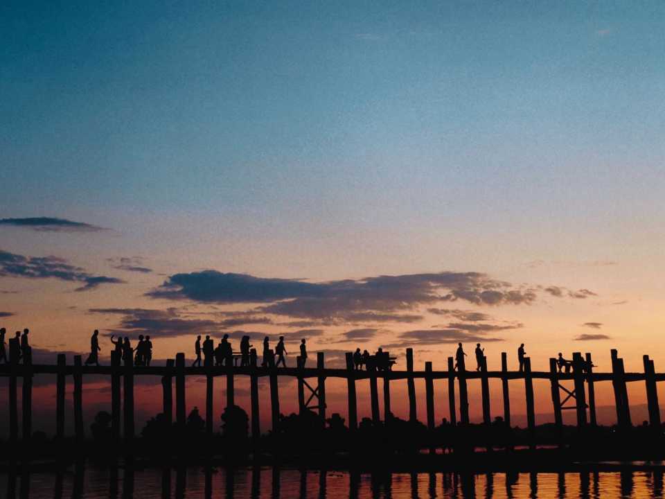 미얀마에서 두 번째로 큰 도시 만달레이에서 가장 붐비는 곳은 마하무니 파고다(Mahamuni Pagoda)다. 미얀마 사람들이 가장 성스럽게 여기는 마하무늬 불상을 보려고 모인 인파 때문이다. 전단향을 뿌린 물로 불상을 세수시킨 후 금박종이를 붙이는데, 이러한 의식이 200년 넘게 이어져 불상에 붙인 금의 무게가 무려 2톤에 달한다. 총길이 1.2킬로미터의 우베인 다리(U Bein Bridge)도 놓칠 수 없는 볼거리다. 150년 역사의 다리가 타웅타만 호수(Tanungthaman Lake)를 가로지르며 끝도 없이 이어지는데, 일출과 일몰 때 호수에 반사된 모습이 몽환적 장면을 연출해 미얀마 최고의 사진 촬영 명소로 꼽힌다.