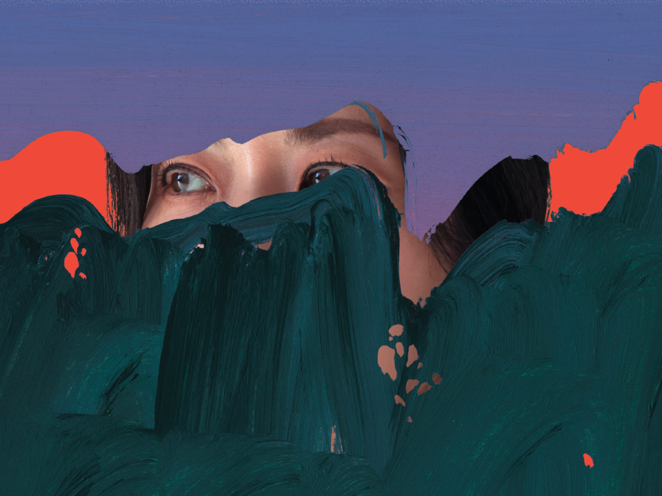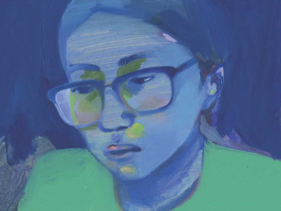 흐린 바닷가 앞에 서 있는 제 모습이에요. 얼굴만 클로즈업해 푸른 바닷빛으로 채색했죠. 이런저런 생각이 많았던 날의 얼굴이라 군데군데 다양한 색을 사용했어요.