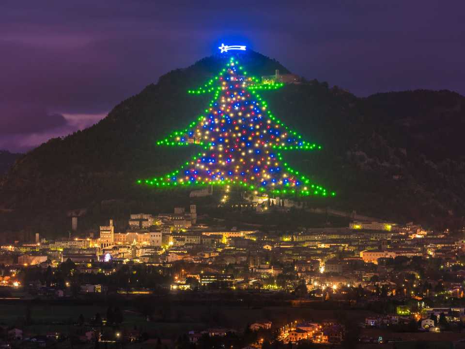 ☝🏻1981년부터 크리스마스를 맞아 도시가 자리한 인지노(Ingino)산의 경사면에 거대한 트리를 설치해왔다.