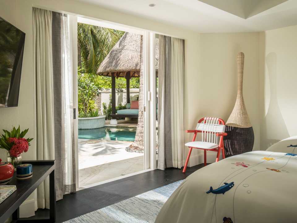 잘게 부서진 구름 사이로 해가 떠오르고 침대에서 눈을 뜨니 바다가 바로 앞에 다가와 있다. 날이 밝자 포시즌스 리조트 몰디브 앳 쿠다 후라의 진가가 드러난다. 개별 방갈로로 이루어진 총 96개의 객실은 야자나무로 지붕을 만들고 산호 벽돌을 쌓아 벽을 세우는 몰디비안(Maldivian) 스타일의 초가집으로 지었다. 객실 내부 역시 몰디브 전통 방식으로 꾸몄는데, 열대꽃, 조개, 산호, 풍부한 녹지 등 이곳의 자연에서 영감을 받은 벽지나 패브릭으로 포인트를 주고 대나무로 짠 가구를 배치해 고유한 매력과 가치를 담았다. “지난해부터 리조트 전체를 현대적으로 리모델링하고 있어요. 경쾌하고 편안한 몰디브만의 분위기를 유지하면서 말이죠.” 홍보 담당자 샤이마(Shaima)가 말한다. 객실은 일출 뷰와 일몰 뷰로 나뉘고 프라이빗 야외 풀과 해먹, 선베드 등을 갖춘 테라스는 바다와 연결된다. 일출을 볼 수 있는 방갈로는 산호 해변으로 이어지고 일몰 뷰의 방갈로에서는 물고기와 산호가 서식하는 라군으로 곧장 뛰어들 수 있다.