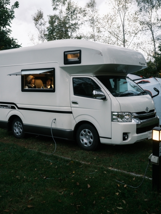 캠핑카의 최대 장점은 사이트마다 텐트를 설치해야 하는 번거로움에서 해방될 수 있다는 것이다. 캠핑카에 따라서는 화장실이나 샤워 설비까지 딸린 경우도 있지만, 몸집이 커질 수록 급수 등 관리하고 신경 써야 할 요소가 많아진다. 이번에 이용한 토요타 ‘로빈슨 771’의 경우, 롱 웨건 바디의 차량으로 일반 면허로 운전이 가능하고 비교적 운행의 부담이 적었다. 길이 4.98미터, 폭 2.1미터로 캠핑카 치고 차체가 크지 않아 좁은 언덕길을 달릴 때도 큰 무리가 없었다. 그 대신 딱 취침용 사이즈다. 아이 포함 최대 7인까지라고 설명되어 있지만, 쾌적하게 이용하려면 4인 정도가 알맞다. 에어컨과 히터가 장착됐고 작은 싱크대와 냉장고, 휴대용 버너 등을 구비하고 있어서 물을 끓이는 정도의 간단한 조리는 가능하다.