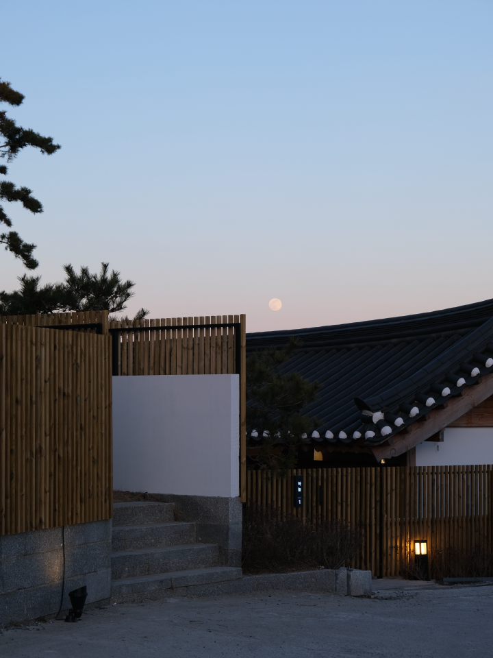 태안반도 서쪽 끝, 의항해변을 마주한 호텔어라이브 태안 탼 한옥비치리조트(이하 탼 리조트)에서 서해의 긴긴 겨울 밤을 보내기로 한다. 언덕의 가파른 경사면을 따라 늘어선 한옥 사이를 거닐고 있으니 작은 한옥마을에 온 듯한 기분이다. 가장 안쪽에 자리 잡은 리셉션 탼 라운지는 통창으로 되어 있어 먼 바다에서 파도가 밀려 오는 풍광이 한눈에 담긴다.
