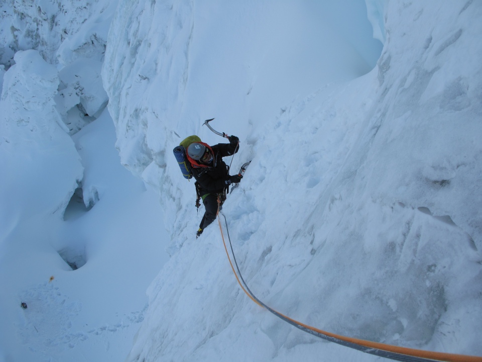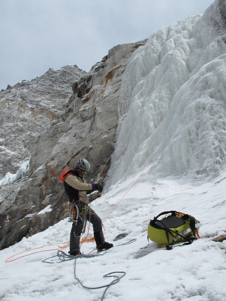 해발 7,000미터에 달하는 산을 한참 오르다 보면, 내려가야 하는 길을 더 걱정할 때가 많다. 오를 때에는 체력도 관리하고 안전을 위해 *확보물도 많이 설치한다. 하산할 땐 체력이 거의 바닥나고 판단능력도 떨어져서 실수할 확률이 높다. 1,000미터가 넘는 벽을 하강하기 때문에 만약을 대비해 장비 사용을 최대한 아끼는데, 그러다 보면 확보 *앵커가 위태롭게 느껴질 수밖에 없다. 눈 속에 60센티미터가량 되는 *스노 바 하나만 설치하고 매달려 하강하거나 얼음에 구멍을 뚫어 로프를 통과시킨 후 매달려 하강을 해야 한다. 그래서 등반은 내려올 때 더 위험하다,