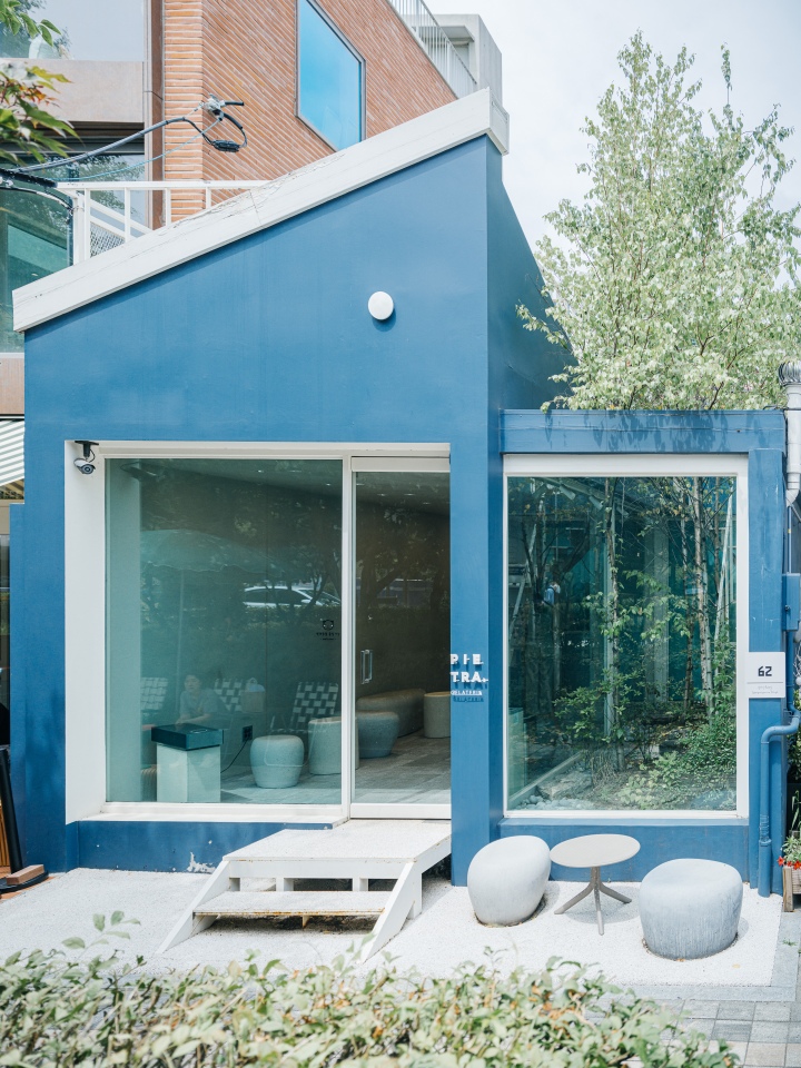 자연 친화적(혹은 정신적) 관점에서 이야기하자면, 피치바이피치 최고의 복지는 사무실이 경의선 숲길 코앞에 자리한다는 사실이 아닐지. 봄이면 벚꽃이, 여름이면 장미와 능소화가, 가을이면 단풍이, 겨울엔 눈 쌓인 나무가 가득한 철로를 거닐며, 사계절의 뚜렷한 변화를 실감할 수 있으니 말이다. 숲길에서 가좌역 방향으로 걷다 보면 여유롭고 개성 있는 동네 가게를 여럿 만날 수 있는데, 계절마다 사람들이 자주 찾는 가게도 조금씩 달라진다. 여름에는 이탈리아 시칠리아의 바다가 떠오르는 푸른색 건물에 들어선 수제 젤라토 전문점 피에트라(이탈리아어로 '돌'이라는 뜻)가 특히 눈에 들어온다.