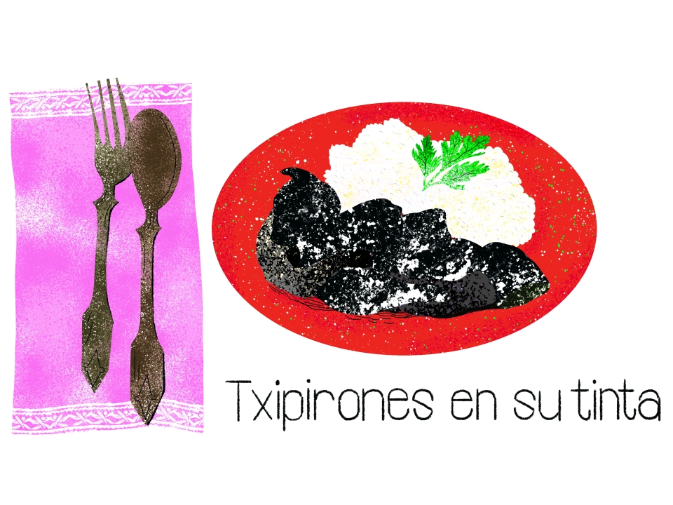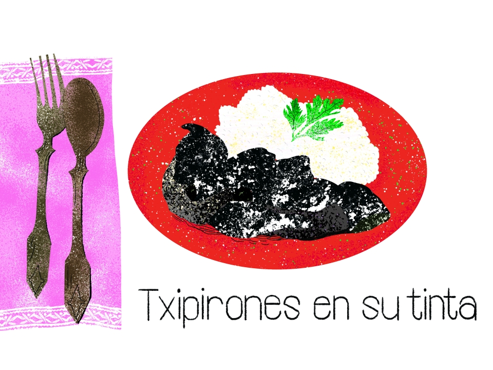 미식의 성지 바스크에는 네 가지 색의 독특한 전통 소스가 있습니다. 파슬리와 생선 육수로 만드는 초록색의 살사 베르데(Verde), 대구 껍질의 젤라틴을 사용해 끈적한 질감이 특징인 하얀 소스 필필(Pilpil), 바스크 전통 고추와 붉은 양파로 만드는 빨간색 소스 비스카이나(Bizkaina), 마지막으로 오징어 먹물로 만드는 검은 소스입니다. 그 중 오징어 먹물 소스는 전혀 식욕을 자극할 것 같지 않은 색이지만 한번 맛보고 나면 볼 때마다 바로 군침을 흘리게 될지도 몰라요. 이 검은색 소스에 퐁당 빠진 어린 오징어 요리가 치피로네스 엔 수 틴타입니다. 오래 볶은 달콤한 양파와 새콤한 화이트 와인, 토마토와 먹물의 감칠맛이 녹아든 소스 또한 별미죠. 몸통을 다리로 채워 더욱 통통해진 오징어는 한입 베어 물면 쫄깃하기보다는 한없이 부드럽습니다. 심지어 흰밥을 곁들여 먹으면 더 맛있는데, 한국 사람에겐 자연스레 짜장밥이 연상되지요. 지금 이 글을 쓰는 깊은 밤에도 생각나는 맛이네요.