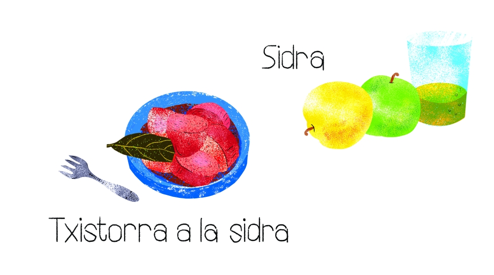 바스크를 대표하는 전통술 중 하나가 사과주 시드라입니다. 시드라 시즌인 1월과 4월 사이에 바스크를 방문하면 밤나무로 만든 거대한 발효통에서 시드라를 바로 따라 마실 수 있지만(바닥에 마구 흘리면서) 이 시기를 놓쳤다고 너무 아쉬워할 필요는 없어요. 병에 담긴 시드라는 연중 어느 때나 마실 수 있습니다. 예전에는 가을에 수확한 사과를 겨우내 발효해 만든 첫 번째 시드라 통을 열 때 전통악기를 연주하며 온 마을에 이 소식을 알리고 사람들을 불러 모아 축제를 벌였다고 합니다. 바스크 사람들은 시드라를 참 좋아해서 해마다 사가르도테기(Sagardotegui)라고 불리는 시드라 양조장을 찾아가 한 해 동안 마실 시드라를 박스째로 사오곤 합니다. 여기서 잠깐, 바스크어로 사가르(Sagar)가 사과인데, 우리말과 너무 비슷하지 않나요?