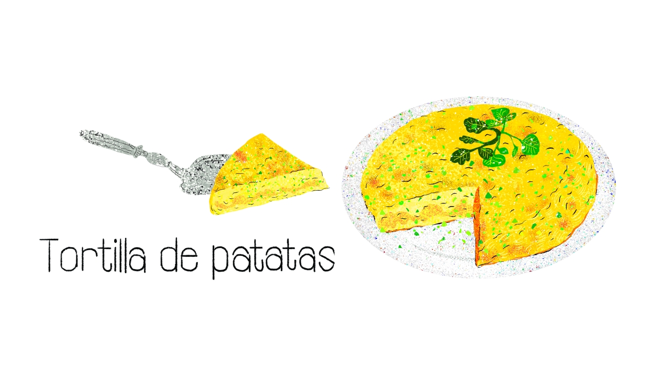스페인 바스크 요리 중 유명한 토르티야 데 파타타스의 일러스트레이션.