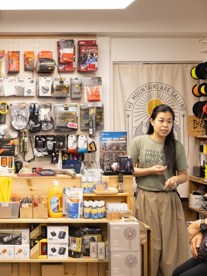 몽콕역에서 내려 미로처럼 얽힌 골목 중 파윤 스트리트(Fa Yun Street)라고 쓰인 표지판을 찾는다. 수많은 글로벌 브랜드 매장을 지나 낡은 건물이 다닥다닥 늘어선 골목을 통과한다. 20여 년의 역사를 지닌 아웃도어 편집숍 엑스마크만큼이나 오래된 건물 4층에 오른다. “임대료가 저렴한 곳을 찾다 보니 접근성이 그리 좋지 않아요.”라며 앳된 얼굴의 매장 매니저 베티 웡(Betty Wong)이 반가운 얼굴로 맞는다. 엑스마크는 한국, 일본, 미국 등 유명 아웃도어 브랜드의 울트라 라이트 하이킹 제품을 큐레이팅해 판매한다. 홍콩의 산 대부분이 차로 접근하기 어렵고, 주거 공간도 협소하기 때문에 간단하고 가벼운 장비로 즐길 수 있는 울트라 라이트 백패킹이 대세로 자리 잡았다고.