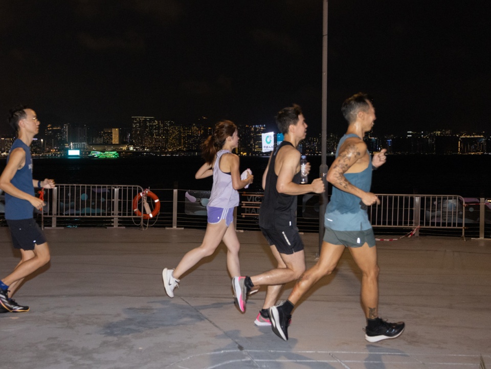 태풍경보 3호가 발효된 상황에도 30여 명의 러너가 모였다. 오늘의 코스는 해피 밸리에서 출발해 빅토리아 하버, 소고 백화점을 거쳐 다시 해피 밸리로 돌아오는 총 6킬로미터의 여정. 코스는 매주 달라진다. 하버 러너스는 화려한 등불이 아름다운 웡타이신 사원(Wong Tai Sin Temple), 사바나 예술 대학(Savannah Colledge of Art and Design) 홍콩 캠퍼스로 사용하던 옛 북구룡 지방법원, 트램이 시장 안을 가로지르는 진풍경으로 유명한 춘영 거리(Chun Yeung Street) 등 이 도시의 진면목을 발견할 수 있는 곳이라면 어디든 달려간다.