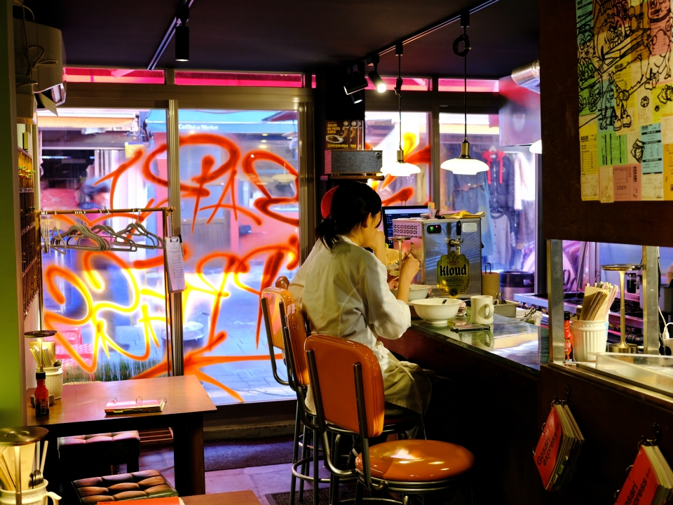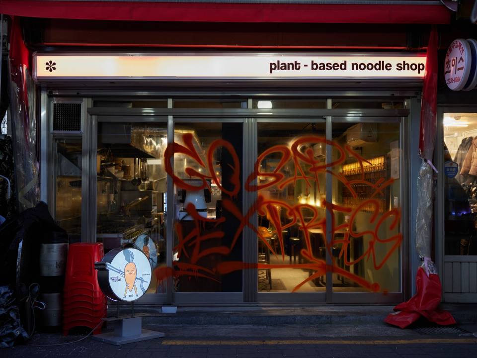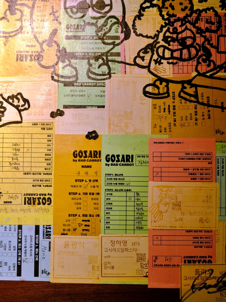 푸드 스타트업 배드캐럿의 외식 브랜드로, 채식의 캐주얼화를 목표로 하는 누들숍이에요. 시장 안 할머니 국숫집을 물려 받은 손녀가 운영하는 노포 맛집을 콘셉트로 했어요. 신당동 서울중앙시장을 방문하는 전 연령층을 아우르기 위해 메뉴를 국수로 정했고요. 국수엔 술이 빠질 수 없죠. 소주와 맥주는 물론 막걸리 칵테일, 와인, 하이볼 등의 주류도 함께 판매하고 있어요.