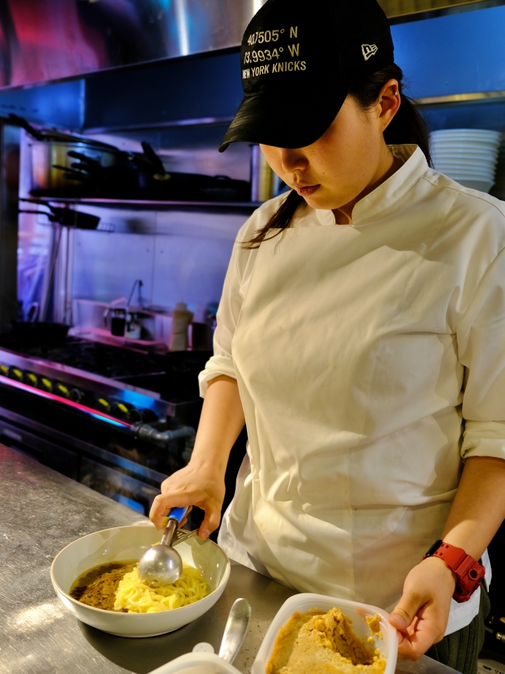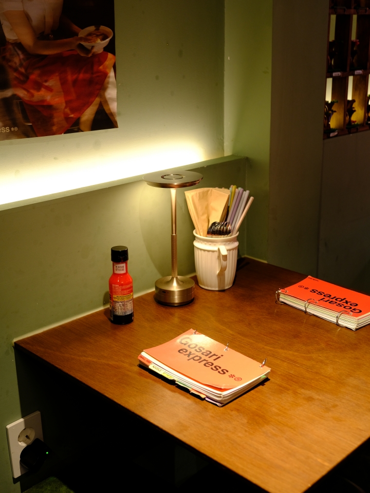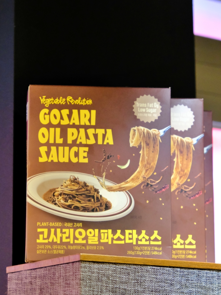 망원시장 근처에서 제철 식재료 팝업 스토어 ‘고사리 바이 배드캐럿’을 운영하다 이곳으로 오게 됐죠. 사실 배드캐럿은 고사리 오일로 만든 파스타 소스를 온라인으로 판매하면서 시작한 회사인데요, 소비자가 고사리 오일 소스를 100퍼센트 활용하지 못하는 것 같아서 늘 안타까웠거든요. ‘이렇게 조리하면 진짜 맛있다!’라는 걸 보여주기 위해 오프라인 매장을 열었어요. 고사리 바이 배드캐럿에선 당일 준비된 제철 식자재 중 손님이 선택한 두 가지 채소로 만든 파스타를 판매했는데, 고사리 익스프레스에서는 고사리 오일 소스를 베이스로 한 클래식 국수를 포함해 들깨 비빔면, 누들 떡볶이 등의 식사 메뉴와 알배추 구이, 완탕 수프처럼 주류와 잘 어울리는 채소 음식을 선보이고 있어요.