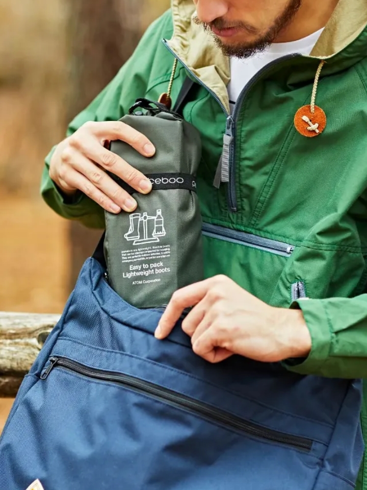 포케부(Pokeboo)는 1942년에 설립된 천연고무 제조사 아톰(ATOM)에서 론칭한 핸드메이드 레인부츠 브랜드로, 그간 쌓아온 제조 기술을 발휘해 500그램이 채 되지 않는 초경량 그리고 휴대성 좋은 아웃도어 제품을 만든다. 포케부의 레인부츠는 내구성과 방수 기능이 뛰어난 수제 천연고무를 사용했고, 일본의 전통 모내기 부츠에서 디자인을 따왔다고. 가장 큰 특징은 부츠 상단에 적용한 나일론 소재의 헤드와 스트링! 비바람을 완벽하게 차단하는 동시에 자유자재로 스타일링이 가능하다. 보디와 헤드의 컬러 조합도 다양하고. 라이프스타일 편집숍 그레이맨션이 국내에 포케부를 론칭하면서 이 멋진 장화를 구입하기 한층 쉬워졌다.