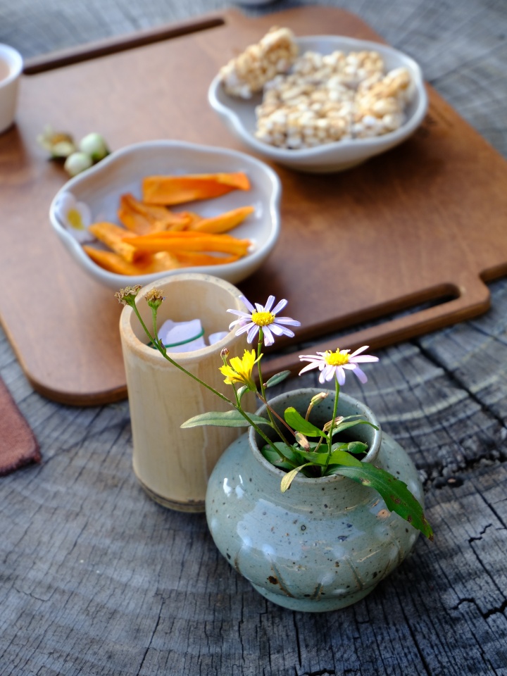 첫 잔은 향, 둘째 잔은 맛, 세 번째는 약으로…. 미소 도자기 공방 주인장인 이미소 호스트가 찻잔을 연달아 채워준다. 우리는 호스트가 손수 직접 차려준 푸짐하고 건강한 저녁을 먹은 후, 간소한 다실에 앉아 있다. 벌써 네 번째 잔이다. 어둠이 내려앉은 한옥 숙소의 마당에는 강아지 순돌이가 올망졸망한 눈을 뜬 채 두리번거린다. 숙소의 입구부터 정원, 처마, 섬돌 등이 예사롭지 않은 솜씨로 꾸며져 있다. 대청마루 일부를 개조한 조붓한 다실 안에서 호스트의 입담이 이어진다. 한창 차에 대한 이야기를 듣고, 하동 서재마을 동네 자랑거리를 듣고, 한옥살이 이야기를 듣는다. 차의 맛이 조금씩 옅어지는 것 같다. 이내 물을 끓여 다시 차를 우릴 준비를 한다. 이번에는 꽃차란다. 차는 거듭 잔을 채우고, 별빛은 밤하늘에 총총하다. 사랑방의 아랫목은 이미 뜨뜻하게 데워져 있겠지.