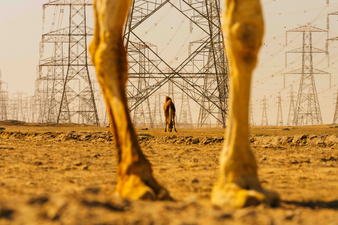 쿠웨이트 사막은 모든 것을 숨김없이 드러내는 공간이다. 바람에 깎여 형체를 잃어가는 땅, 죽은 동물의 흔적, 버려진 쓰레기 더미는 사막의 척박함과 솔직함을 드러낸다. 그 속에서 철탑은 인간의 흔적을 가장 뚜렷하게 드러내는 상징처럼 보인다. 사막과 철탑은 대조적인 존재 같지만, 한편으로는 묘하게 어우러진다. 마치 자연 속에 자리 잡은 인공적인 기념비처럼, 메마른 환경 속에서 철탑은 서 있다. 철탑 사이를 지나는 낙타 떼, 버려진 자동차 부품 그리고 그 위로 펼쳐진 끝없는 하늘은 마치 과거와 현재가 공존하며 끊임없이 이야기하는 듯하다.