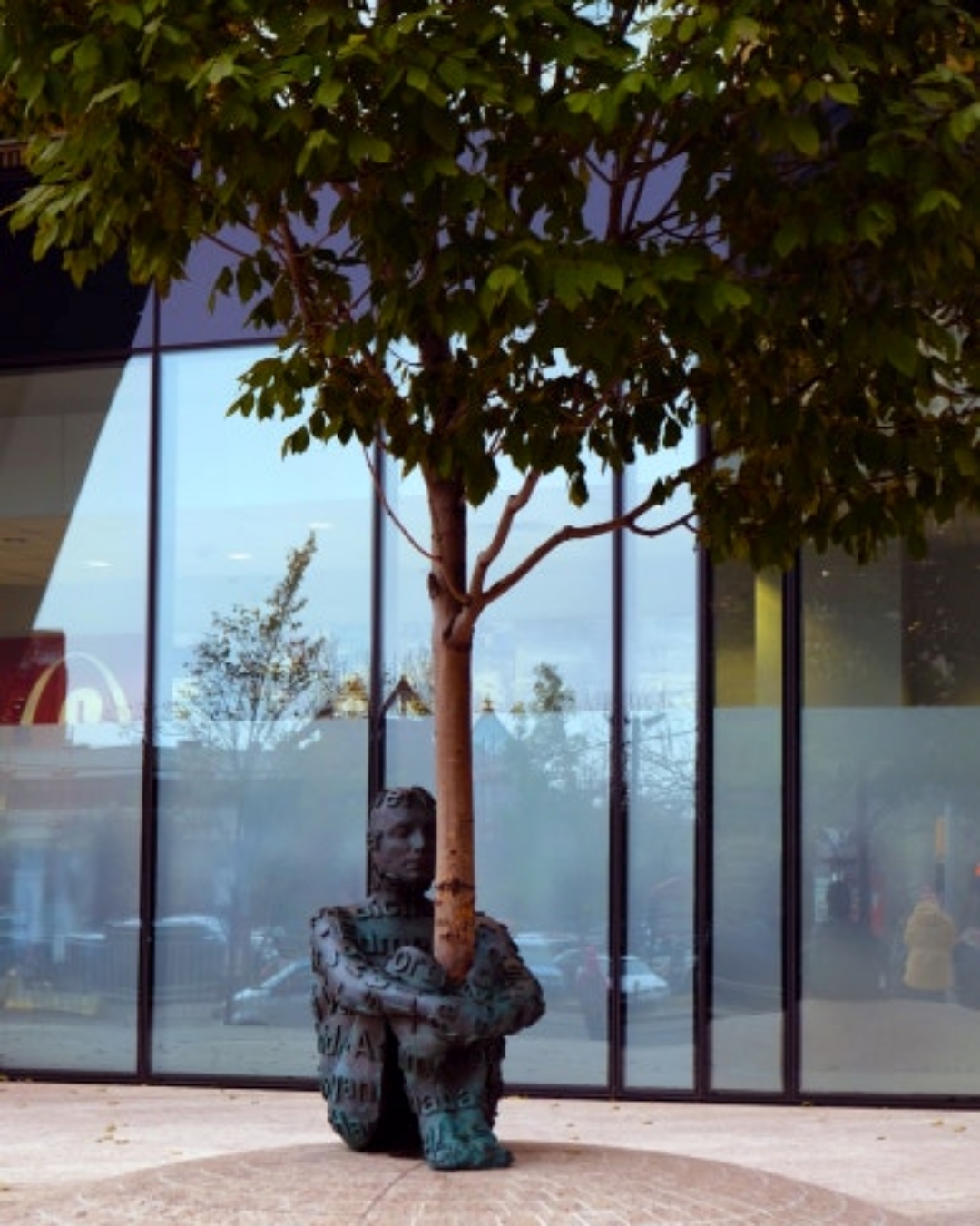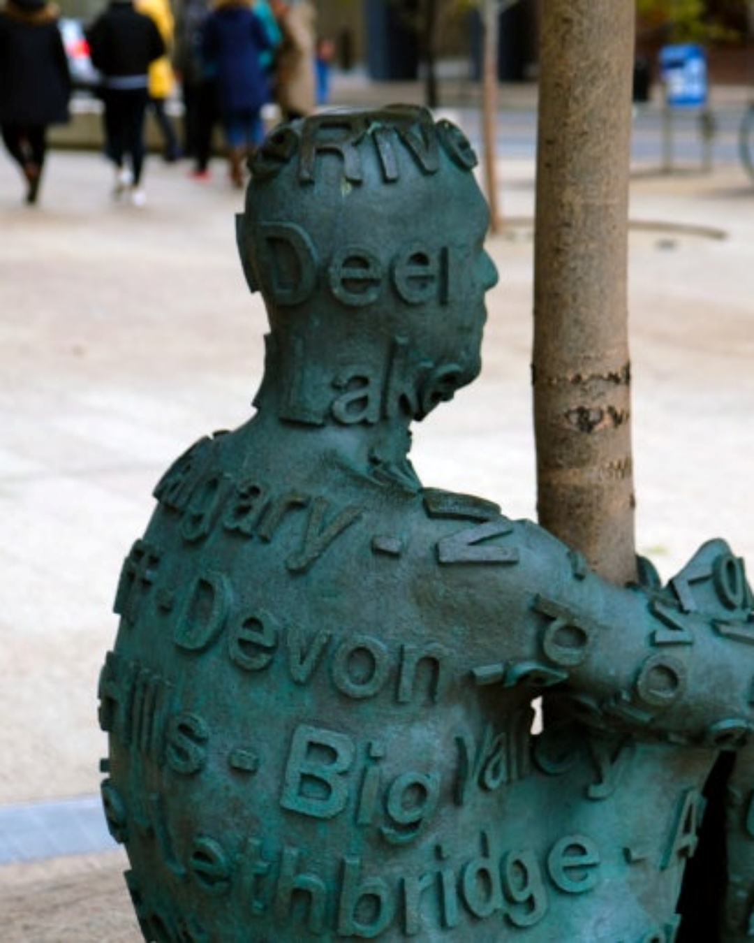 도시 한복판에서 나무를 껴안은 채 앉아 있는 한 남자. 은 하우메 플렌사의 또 다른 작업으로, 보우 타워 광장 북쪽에 자리 잡고 있다. 작가의 말에 따르면, 이 조각상의 남자는 자신의 모습을 표현한 것이라고. 조각상을 클로즈업해서 렌즈에 담으면, 온 몸에 캐나다 앨버타주의 여러 도시 이름이 새겨져 있다는 걸 눈치채게 된다. 등쪽에는 앨버타 최대 도시인 캘거리, 가슴쪽에는 앨버다 주도인 에드먼턴의 철자가 보인다. 앨버타의 여러 도시가 자연(나무)과 더불어 서로 연결되어 존재할 수 있다는 의미다. 작품의 제목인 ‘앨버타의 꿈’처럼 말이다.