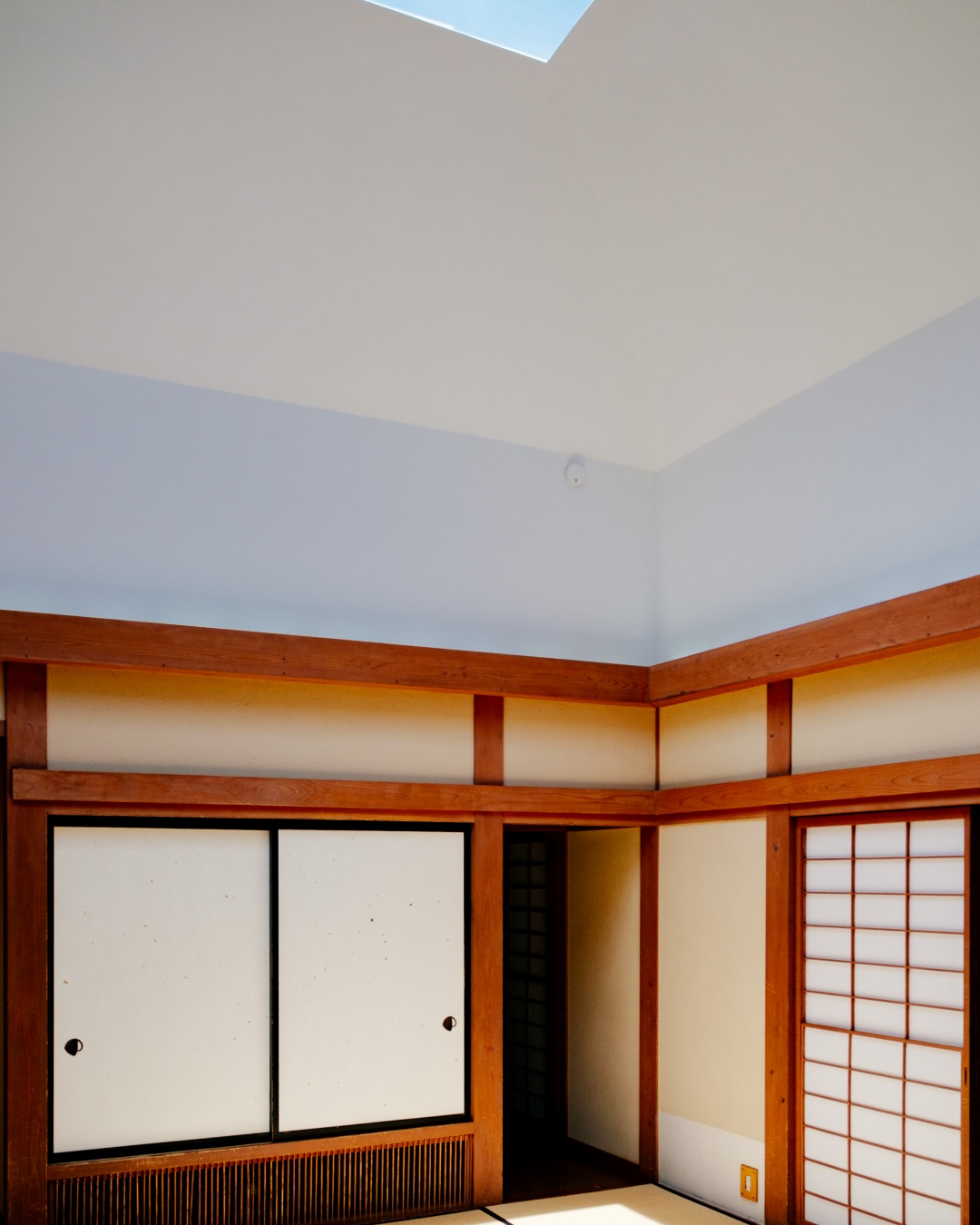 구불거리는 오르막을 올라 다다른 고독하고 단단한 사찰처럼 서 있는 히카리노 야카타의 가장 큰 매력은 터렐의 작품 속에서 머문다는 점이다. (히카리오 야카타는 독채 스테이로 운영된다. 최대 3팀까지 동시에 투숙할 수 있는데, 전체 시설 사용료가 5만 엔(팀 수에 따라 나눠서 분담), 여기에 더해 숙박료는 1인당 1만 엔이다. 투숙하지 않는다면, 낮 시간(12~3pm)에 개별 방문도 가능하다. 1인당 800엔.) 메인 룸인 아웃사이드 인(Outside in)의 개폐식 천장이 일몰과 일출 시간에 맞춰 열리는데, 그때마다 사방에 설치된 LED 조명이 서서히 색감을 바꾸며 하늘빛에 조응한다. 고요 속에서 하늘과 빛이 어우러지는 장면은 시각적인 명상의 순간을 선사한다. 터렐은 메인 룸 외에도 여러 장소에 작업을 남겨 놓았다. 지하의 욕실 바닥에도 광섬유 조명을 설치해 욕조의 물이 스스로 빛나는 듯한 몽환적인 분위기를 자아내고, 복도와 방을 비추는 조명 덕분에 집 전체가 터렐의 작품으로 기능한다.