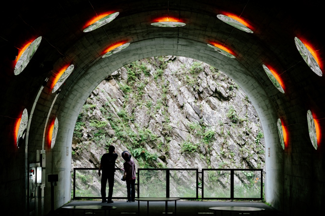 도카마치시에는 대지예술제를 계기로 세계의 주목을 받은 또 다른 작품이 있다. 일본 3대 협곡 중 하나로 꼽히는 기요쓰 협곡(清津峡)에 들어선 기요쓰 협곡 터널이다. 낙석 사고 때문에 출입이 금지된 협곡을 안전하게 관람할 수 있도록 개통한 관광용 터널은 줄어드는 방문객을 걱정하던 차에 새로운 전환점을 맞았다. 2018년 트리엔날레를 계기로 거대한 예술 공간으로 탈바꿈한 것이다. 중국 출신의 건축가 마얀송(马岩松)이 이끄는 MAD 건축사무소는 협곡 터널을 터널 오브 라이트(Tunnel of Light)라는 작품으로 리모델링했다. 750미터 길이의 터널을 5개의 구간(자연의 5가지 원소(목·토·금· 화·수)를 모티프로 터널을 구성했다.)으로 나눴고, 각 구간마다 테마에 맞춰 공간을 재해석했다. 터널 가장 안쪽의 ‘파노라마 스테이션’은 터널 오브 라이트의 하이라이트다. 바닥의 얕은 물거울에 반사되는 풍광이 실제의 계곡과 이어지며 현실과 환상의 경계를 흐린다.