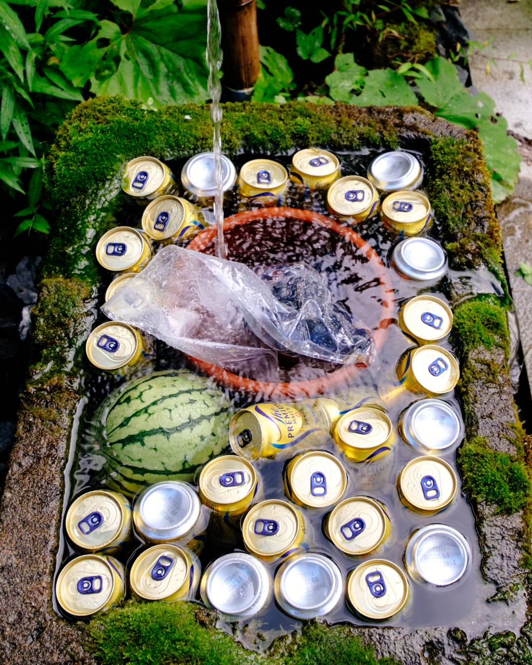 역 바로 건너편의 하타고이센(HATAGO 井仙, 하타고(旅籠)는 일본 에도 시대에 등장한 숙박 시설의 한 종류로, 식사와 잠자리를 제공한다.)1층 카페에서 잠시 더위를 피한다. 에치고유자와역이 개통하던 1925년에 문을 연 하타고이센은 스스로를 ‘설국의 관문’이라고 홍보하고 있다. 1층은 카페 겸 숍, 2층은 레스토랑, 3~5층은 객실과 온천으로 구성되었고, 먹거리부터 실내 장식까지 니가타의 지역 자원을 적극 활용하는 게 눈에 띈다. 카페의 이름은 ‘온천 커피’ 미즈야(水屋)다. 한여름 평일의 카페에는 여행객으로 보이는 손님들이 여러 자리를 차지하고 있다. 온천수로 내린 커피와 온천 푸딩, 유자와 롤케이크 등의 명물을 맛보기 위해서일까? 열차 안에서 먹은 에키벤을 금방 잊은 듯, 산미 강한 커피와 달콤한 디저트가 입안을 감돈다.