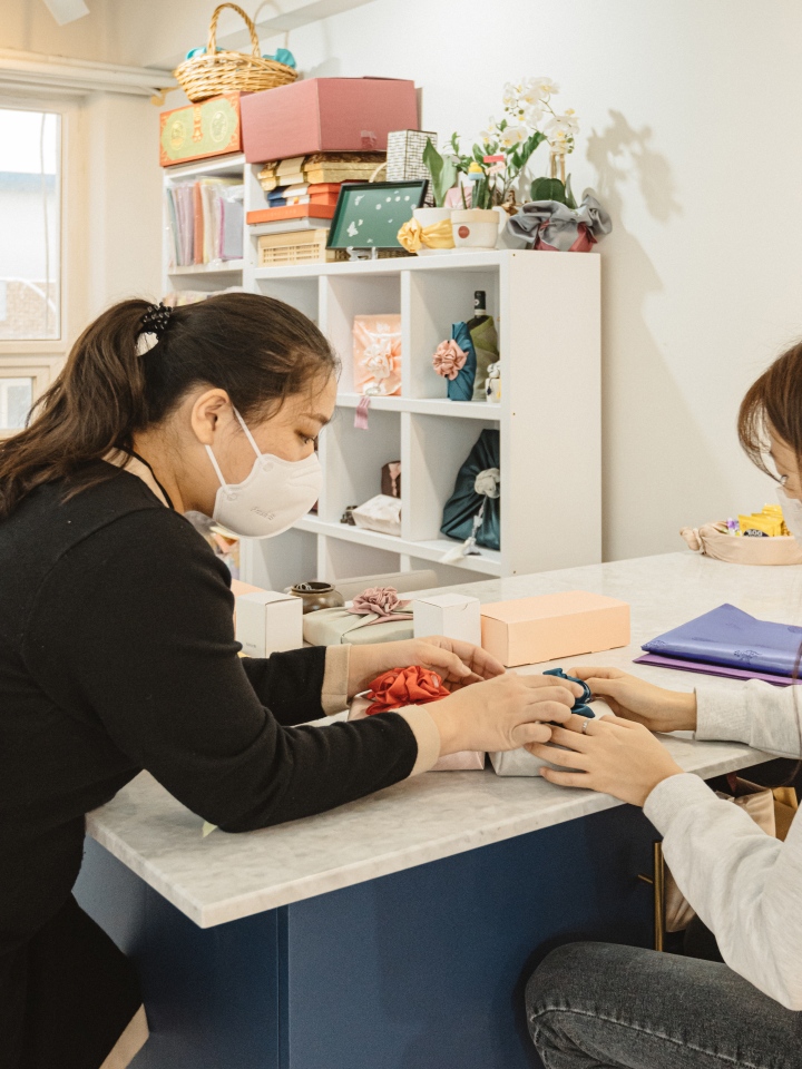 한 번 배워 두면 업사이클링 뿐 아니라, 물건 포장을 할 때도 요긴하게 사용할 수 있어 더욱 실용적인 보자기 클래스! 환경에 관한 거창한 이야기 대신, 일상에서 보자기를 가까이 두고 사용하는 것만으로도 환경에 작은 보탬이 될 수 있습니다.