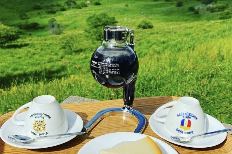 키리가미네의 주봉 쿠루마야마의 해발 고도 1,925m 고산에 위치한 휘테(고산지대의 목조 산장). 오픈 테라스에서 갓 내린 사이폰 커피와 명물 볼 스튜를 대자연의 절경과 함께 즐길 수 있습니다. 눈이 없는 4월~10월은 매일, 11월~3월은 날씨가 좋은 주말에만 오픈합니다.