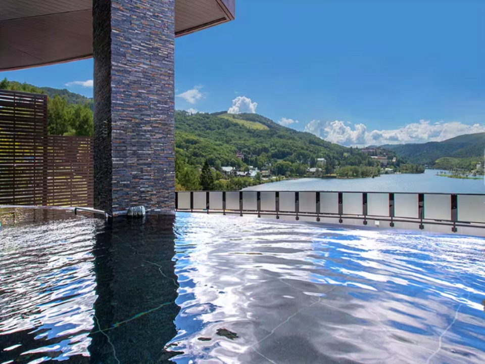 시라카바 호수 북쪽 끝에 들어서 있어 호수 전경이 한눈에 들어오는 대형 호텔. 숙박 시설과 함께 놀이공원인 패밀리 랜드(Family Land)와 스키장도 있어 어느 계절에 방문해도 좋은 곳입니다. 가족 여행객을 위한 휴게 공간과 숍 등의 부대 시설이 있고, 최근 개관한 현대적 디자인의 신관은 스위트룸과 대형 온천탕, 푸드 코트 등을 갖춰 투숙객의 만족도를 높여주고 있습니다. 현지 식자재를 사용해 로컬 음식을 내는 푸드 코트는 뷔페식으로 운영되며, 야외 온천탕에서는 시라카바 호수 전체를 조망할 수 있습니다. 가족이 대를 이어 운영해, 지역 기반의 탄탄한 서비스와 인프라를 자랑합니다.